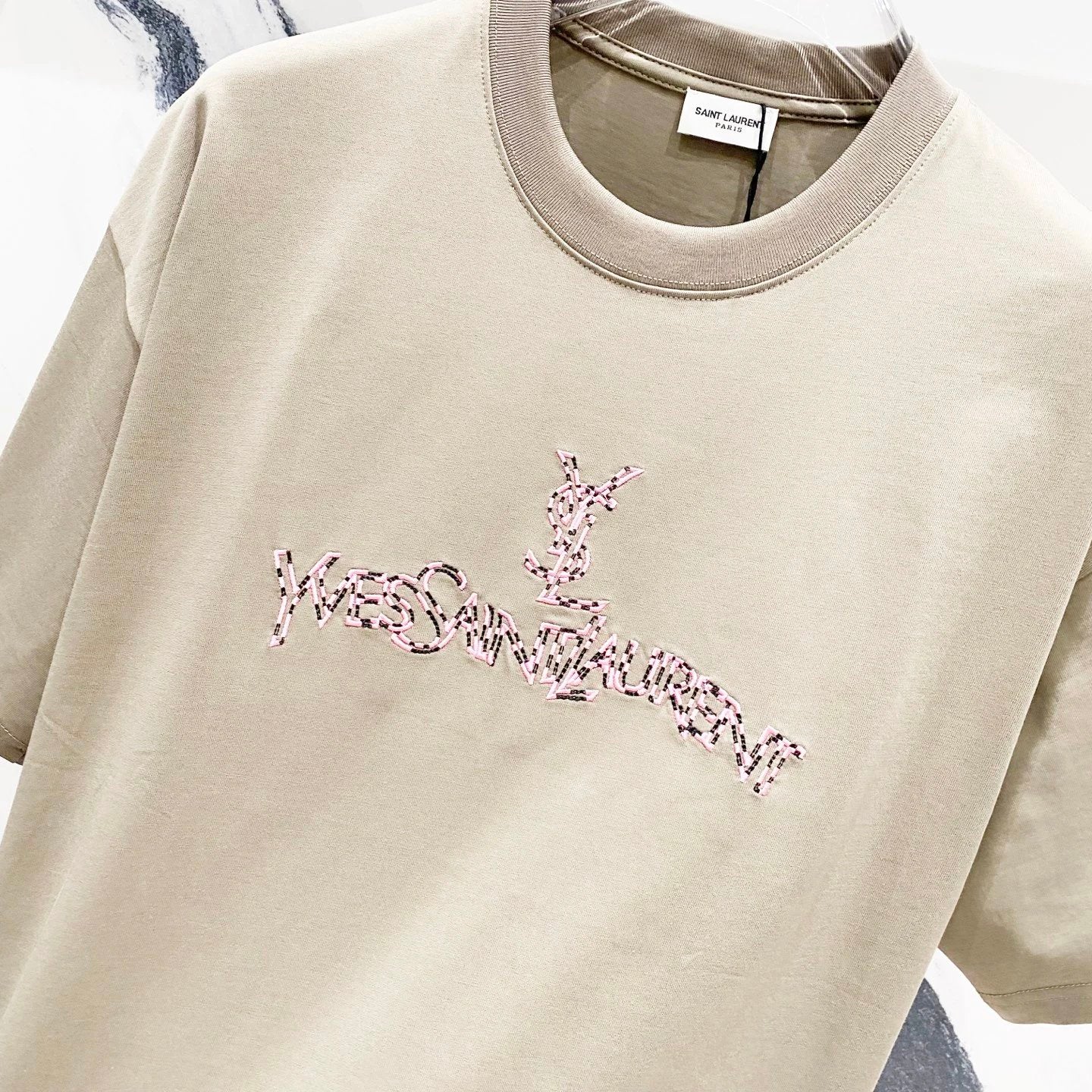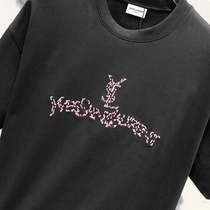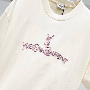 YSL T-shirt Chest Patchwork Letter Embroidery logo round Neck Short Sleeve25ss New pure cotton T Unisex T-Shirt OS Drop Shoulder Loose Fit Base Shirt Top T-Shirt Short Sleeve