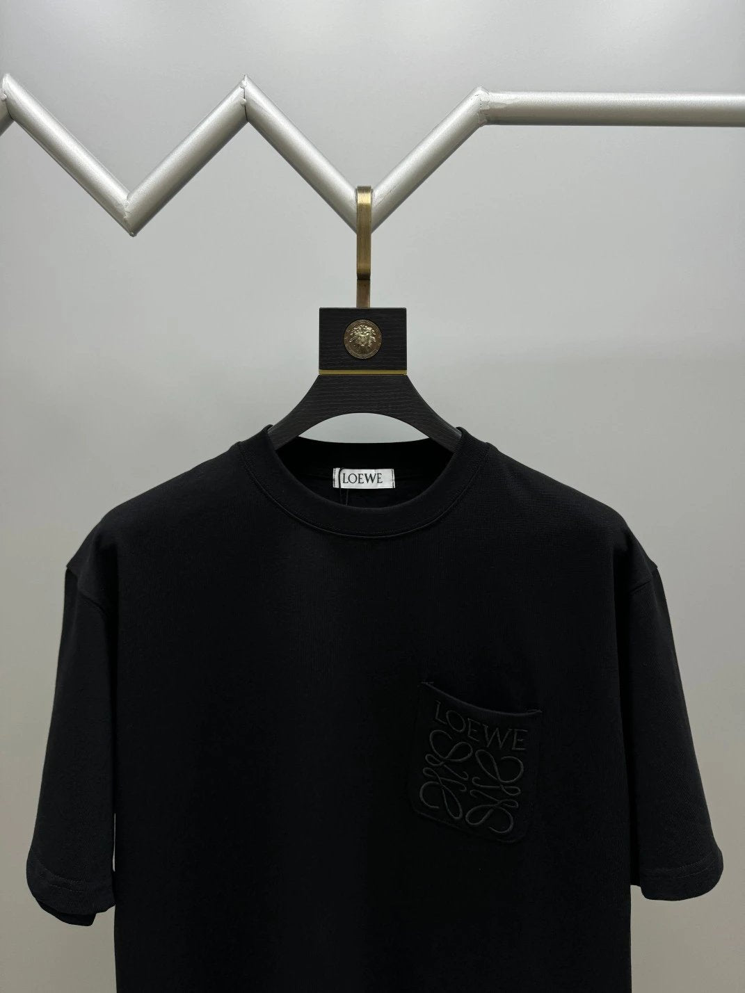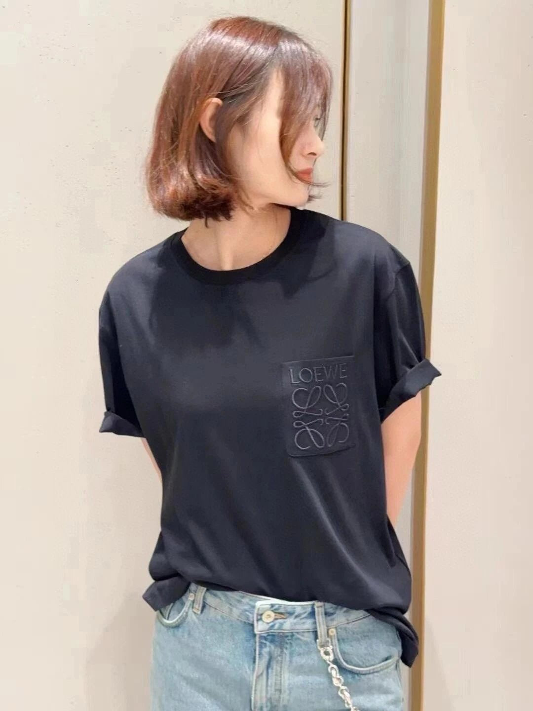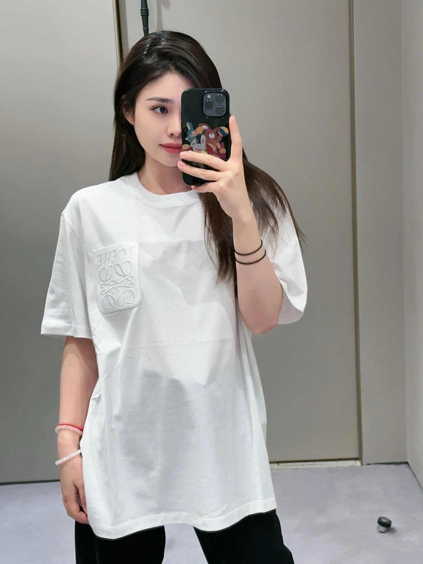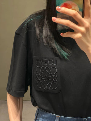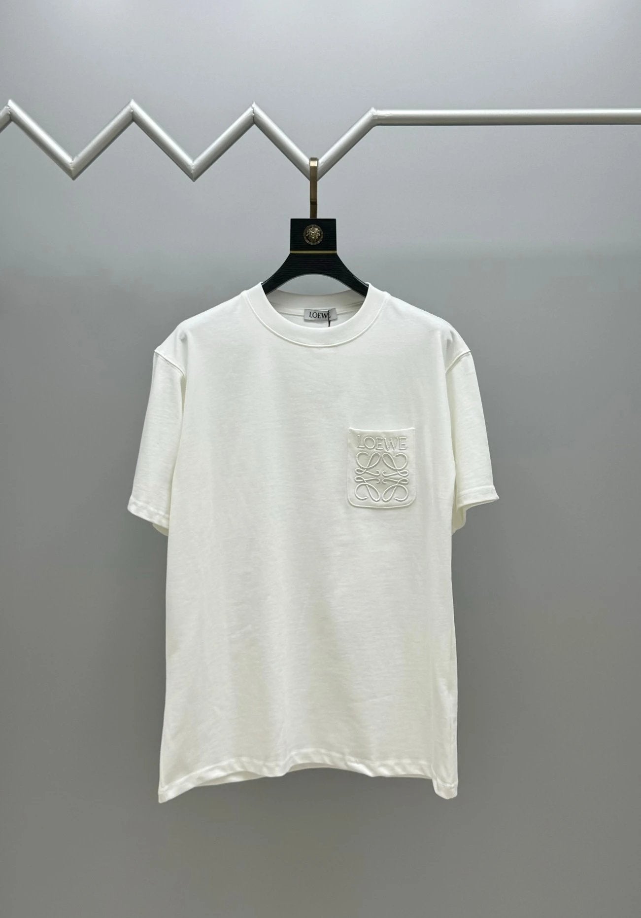 LOEWE T-shirt Chest Pocket Embroidery logo round Neck Short Sleeve25ss New Pure Cotton Unisex Style T T-shirt OS Loose Fit Base Shirt Short Sleeve Top T-Shirt
