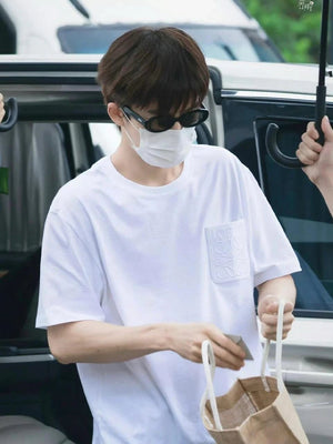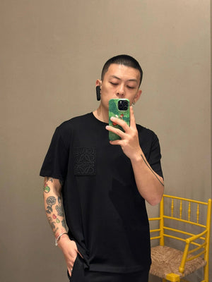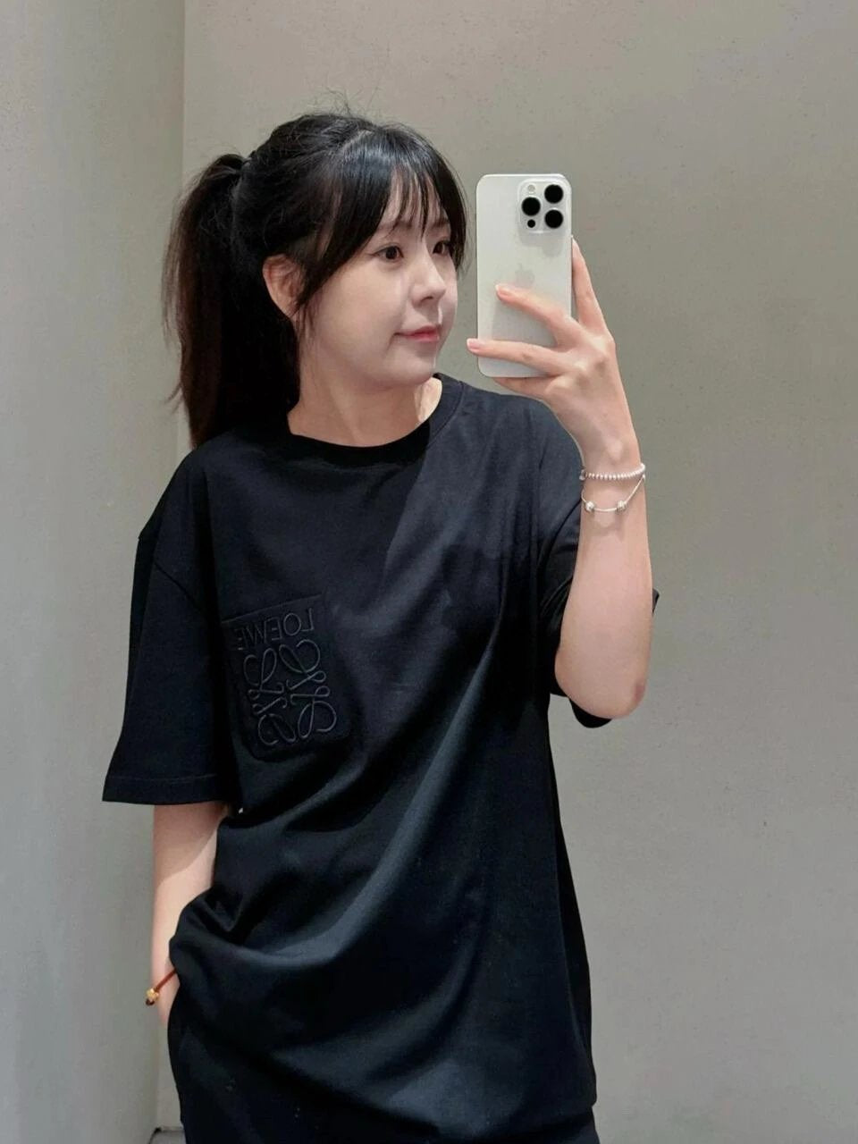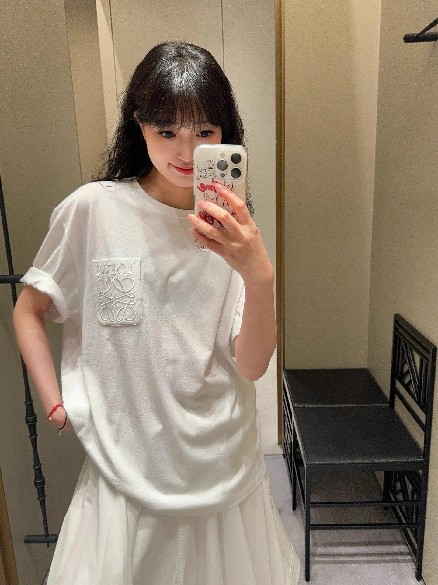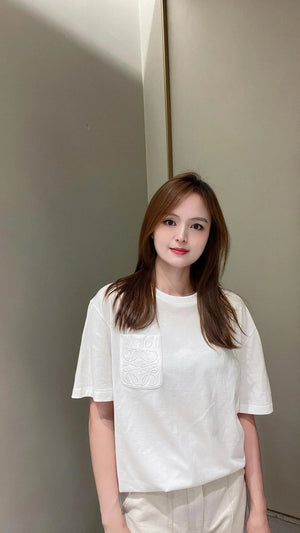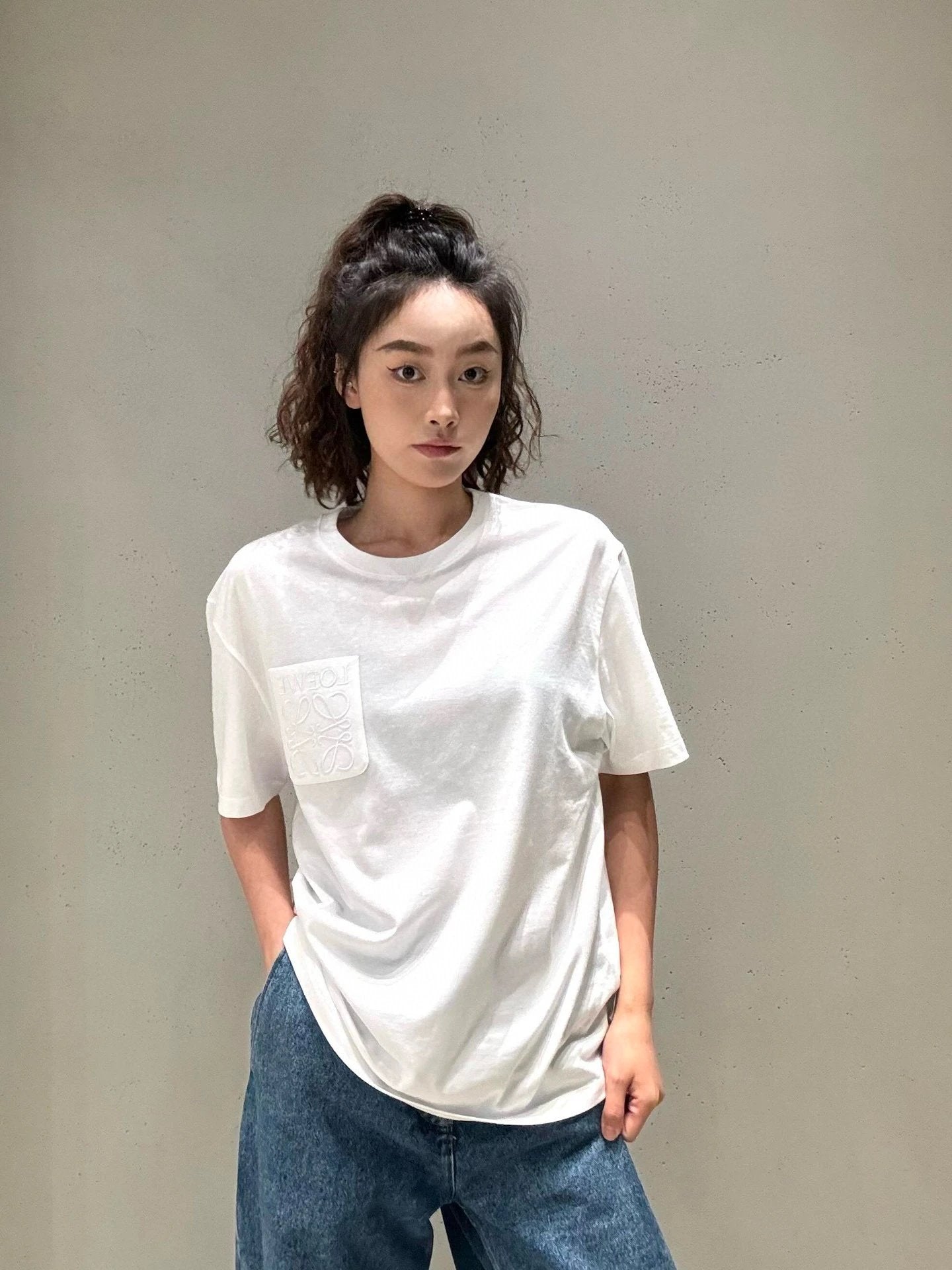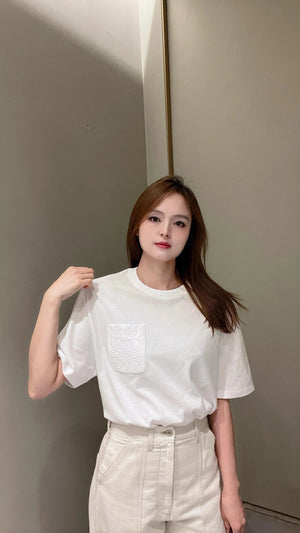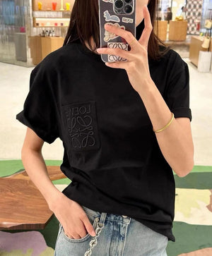 LOEWE T-shirt Chest Pocket Embroidery logo round Neck Short Sleeve25ss New Pure Cotton Unisex Style T T-shirt OS Loose Fit Base Shirt Short Sleeve Top T-Shirt