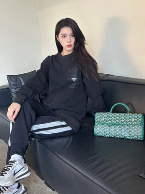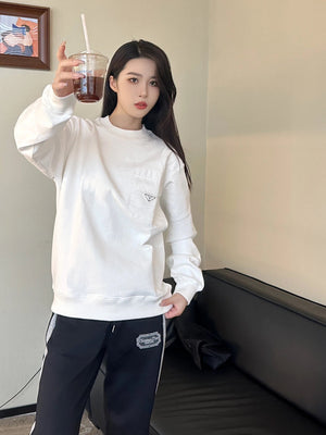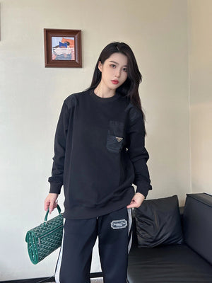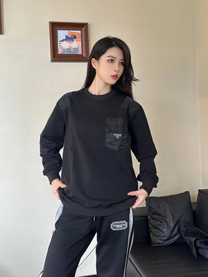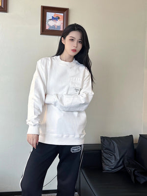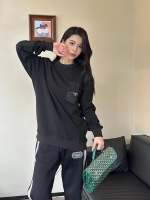 PRADA Hoodie Chest Pocket round Neck Sweater for Men and Women
