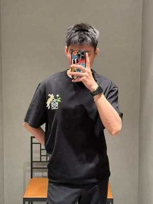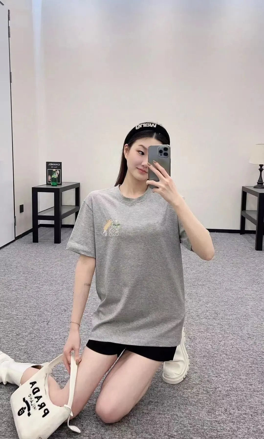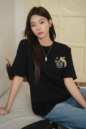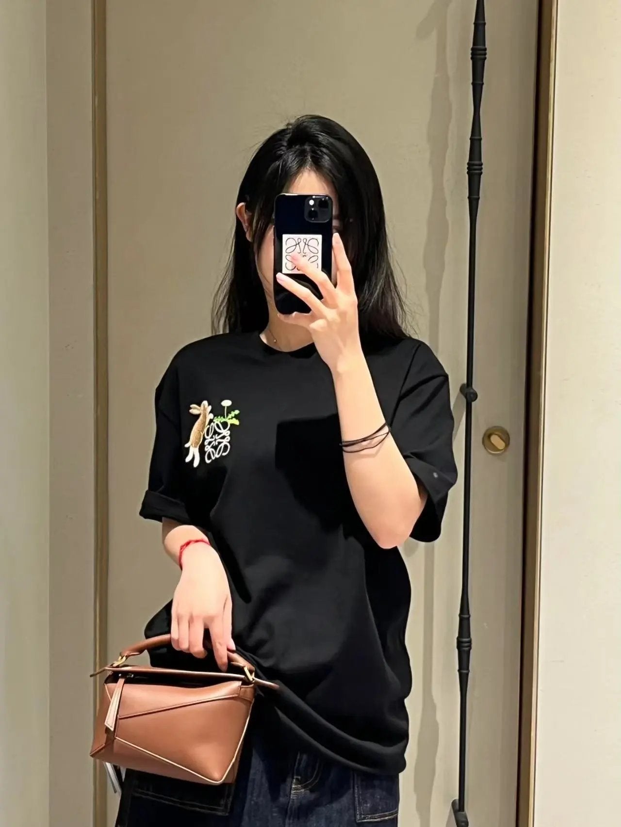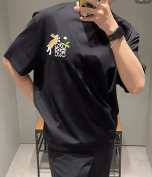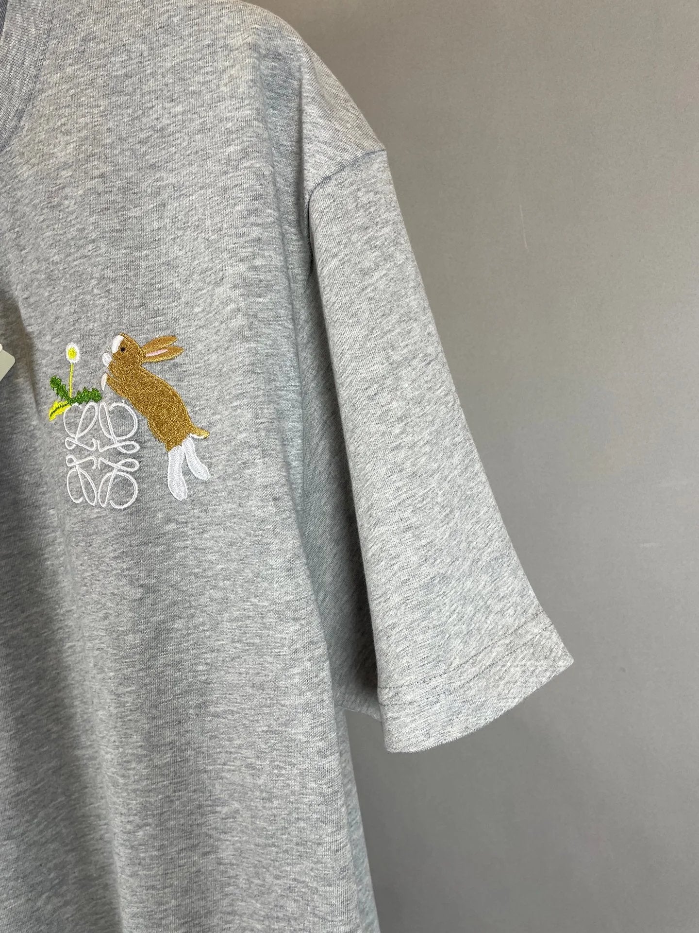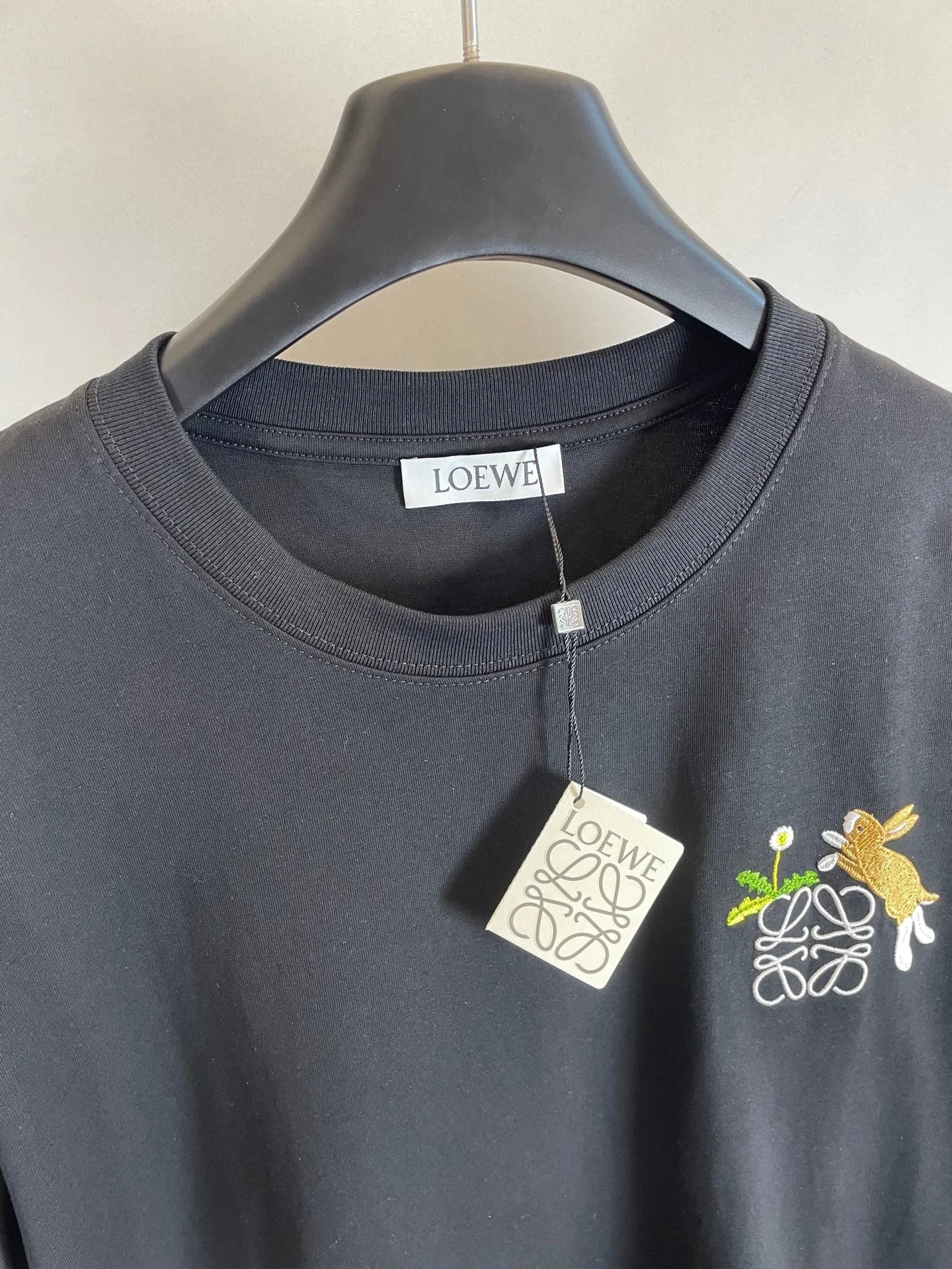 LOEWE T-shirt Chest Rabbit Embroidery logo round Neck Short Sleeve25ss New pure cotton T Unisex T-Shirt OS Drop Shoulder Loose Fit Base Shirt Top T-Shirt Short Sleeve