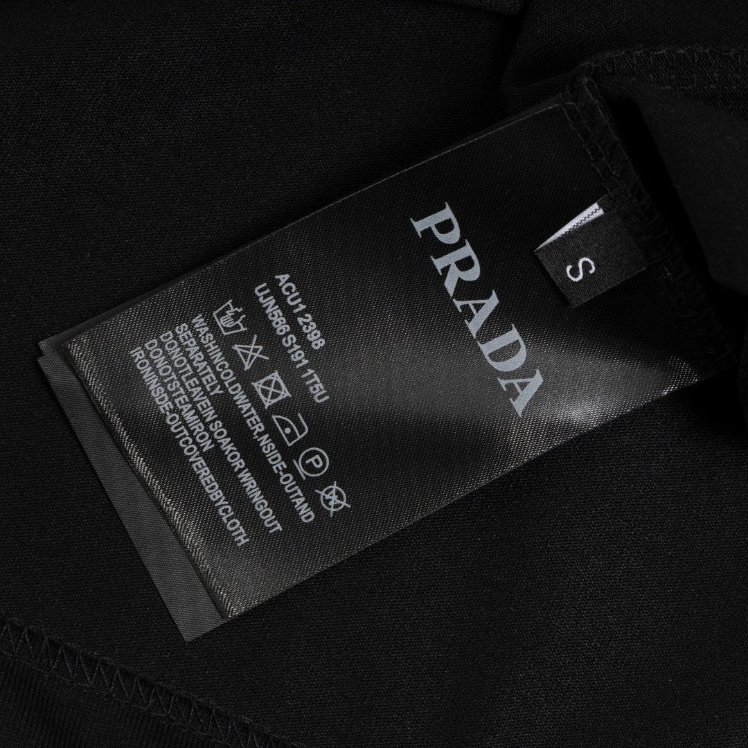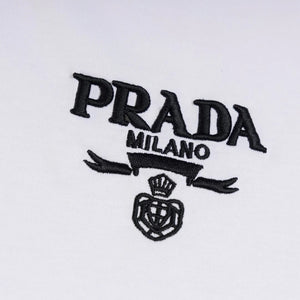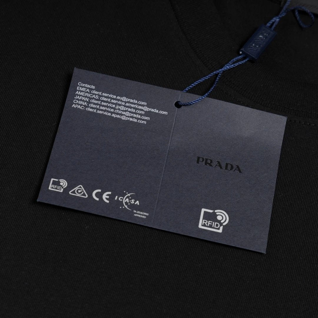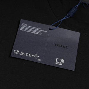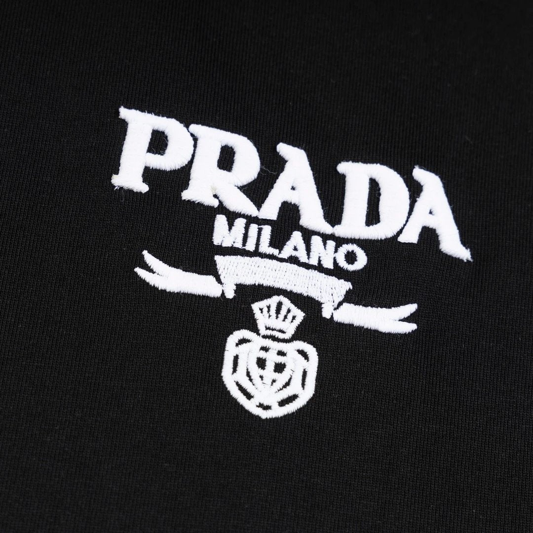 Prada 24fw Crew Neck T-shirt This Regular Pattern Men's round Neck T-shirt Is Made of Exquisite Embroidery on the Chest. the Iconic Prada Triangle Logo, Which Has Always Been Reinterpreted in a Novel Way, Is Embodied in a Distinctive Brand Style. The Image of Modern Men and Women Is Characterized by the Mix and Match of Streamline and Full Profile, Presenting a Perspective That Is Synchronous and opposite to the Tradition.