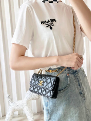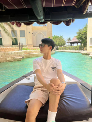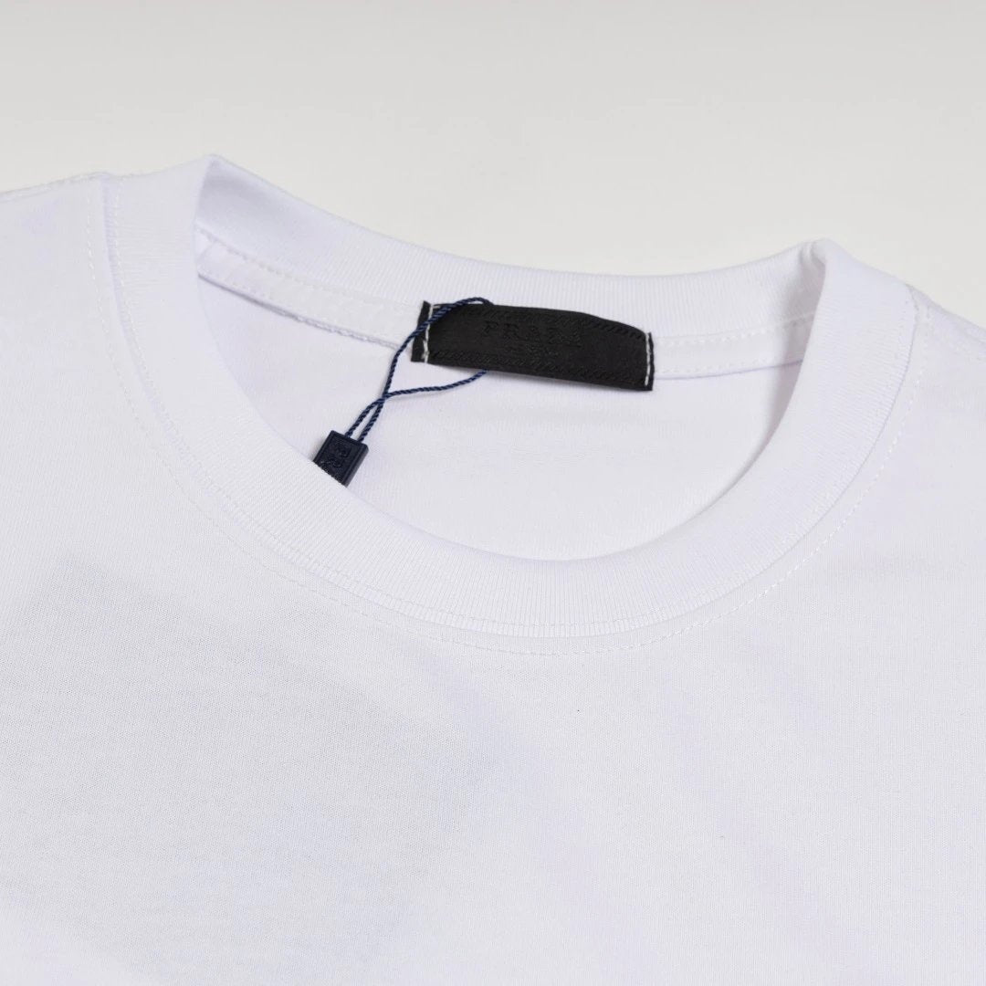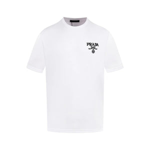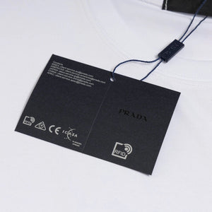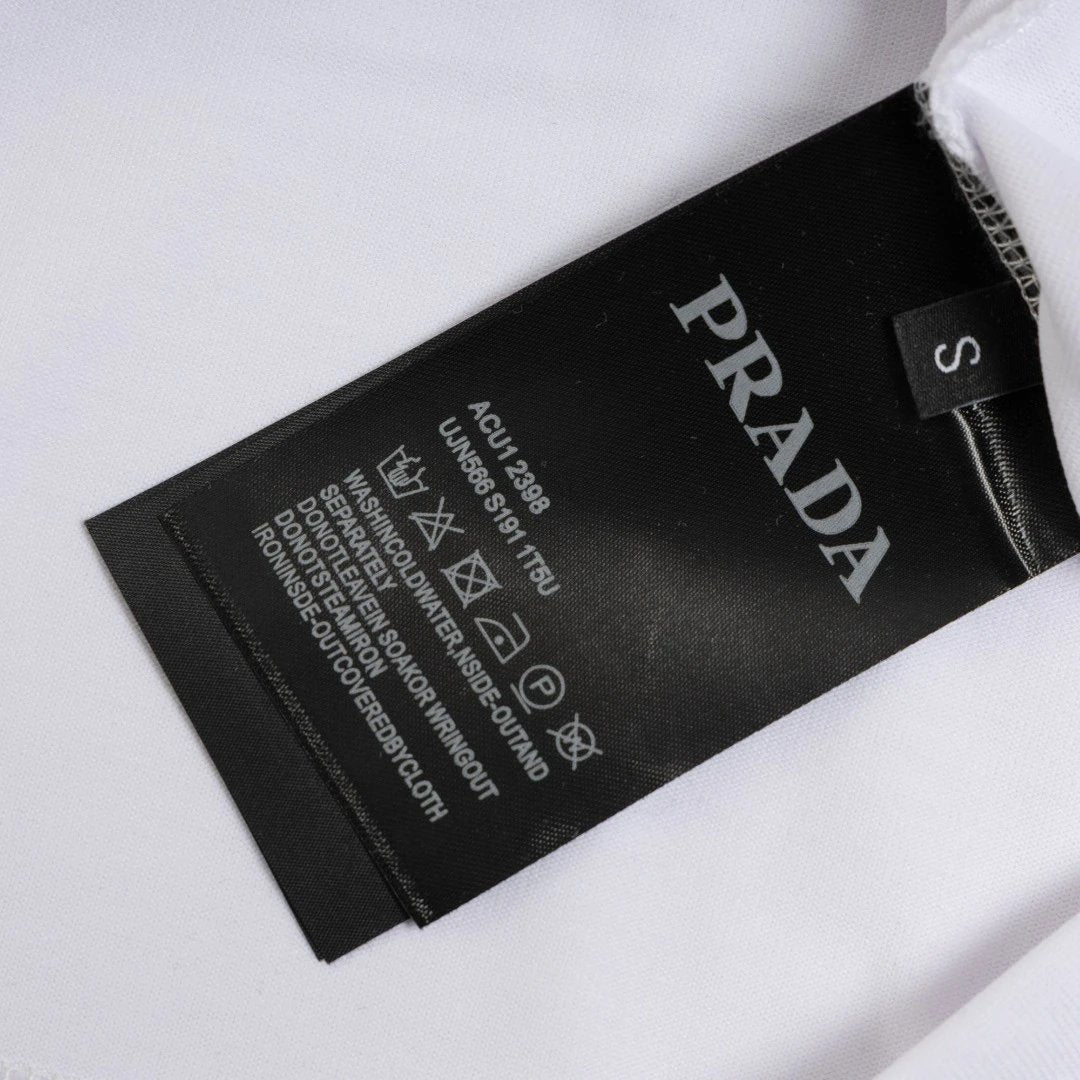 Prada 24fw Crew Neck T-shirt This Regular Pattern Men's round Neck T-shirt Is Made of Exquisite Embroidery on the Chest. the Iconic Prada Triangle Logo, Which Has Always Been Reinterpreted in a Novel Way, Is Embodied in a Distinctive Brand Style. The Image of Modern Men and Women Is Characterized by the Mix and Match of Streamline and Full Profile, Presenting a Perspective That Is Synchronous and opposite to the Tradition.