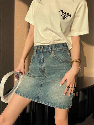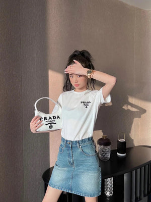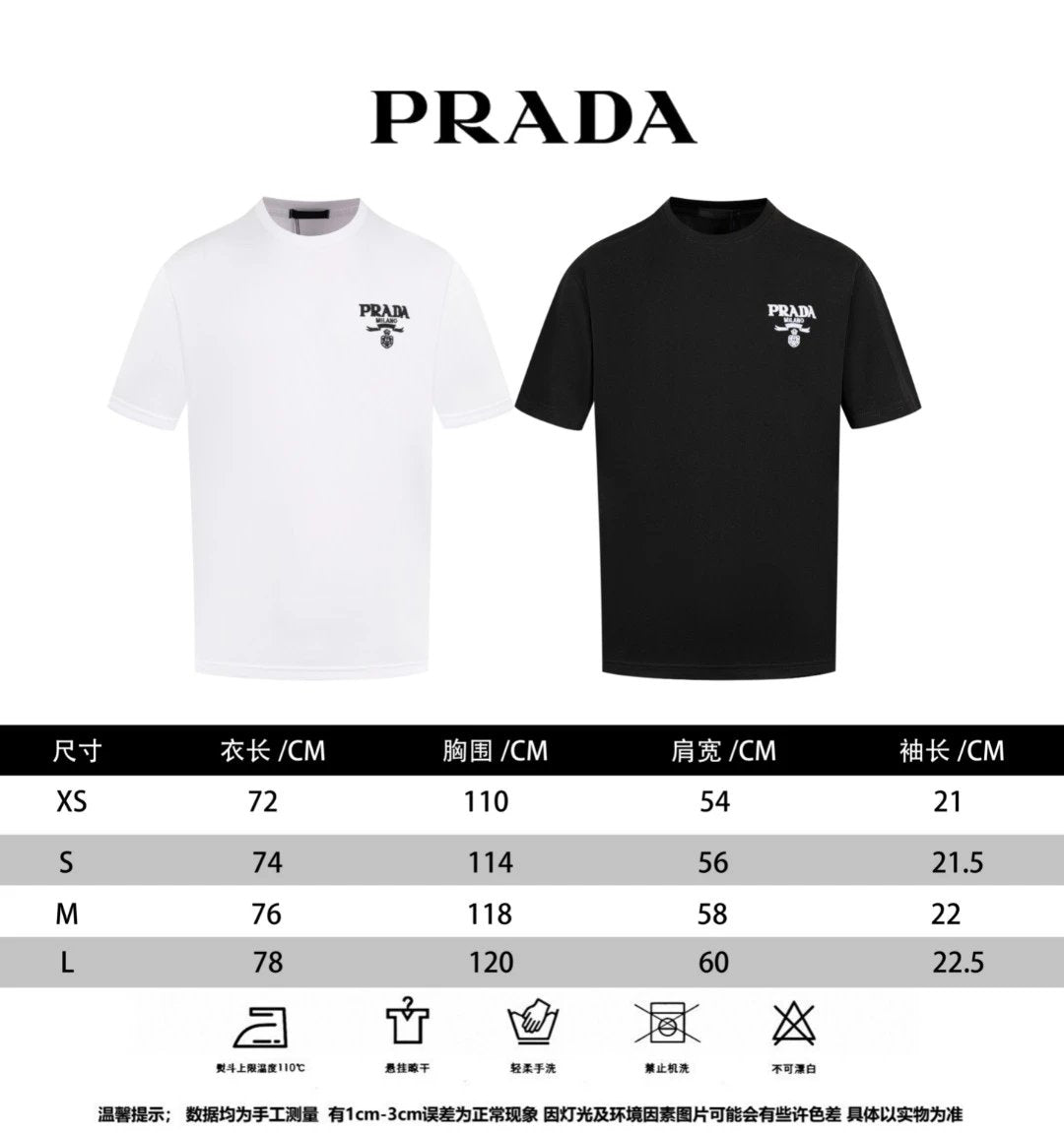 PRADA T-shirt Chest Triangle Mark Embroidery logo round Neck Short Sleeve25ss New Pure Cotton Unisex Style T Casual T-Shirt Base Layer Shirt OS Loose Fit Half Sleeve Top Plus Size