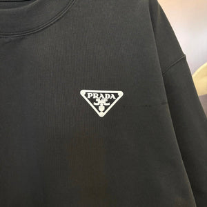 Prada's Spring and Summer Limit, customized Pursuing a Dream Elegant Rib Cotton Texture Is Delicate and Comfortable, Sticking to the Skin with Pure Black Color Explains the Elegant and Iconic Logo, the Clothes Are Low-Key but Eye-Catching, Highlighting the Unique Identity and Charm, Highlighting the Shoulder Lines, Feeling the Confidence from the inside out