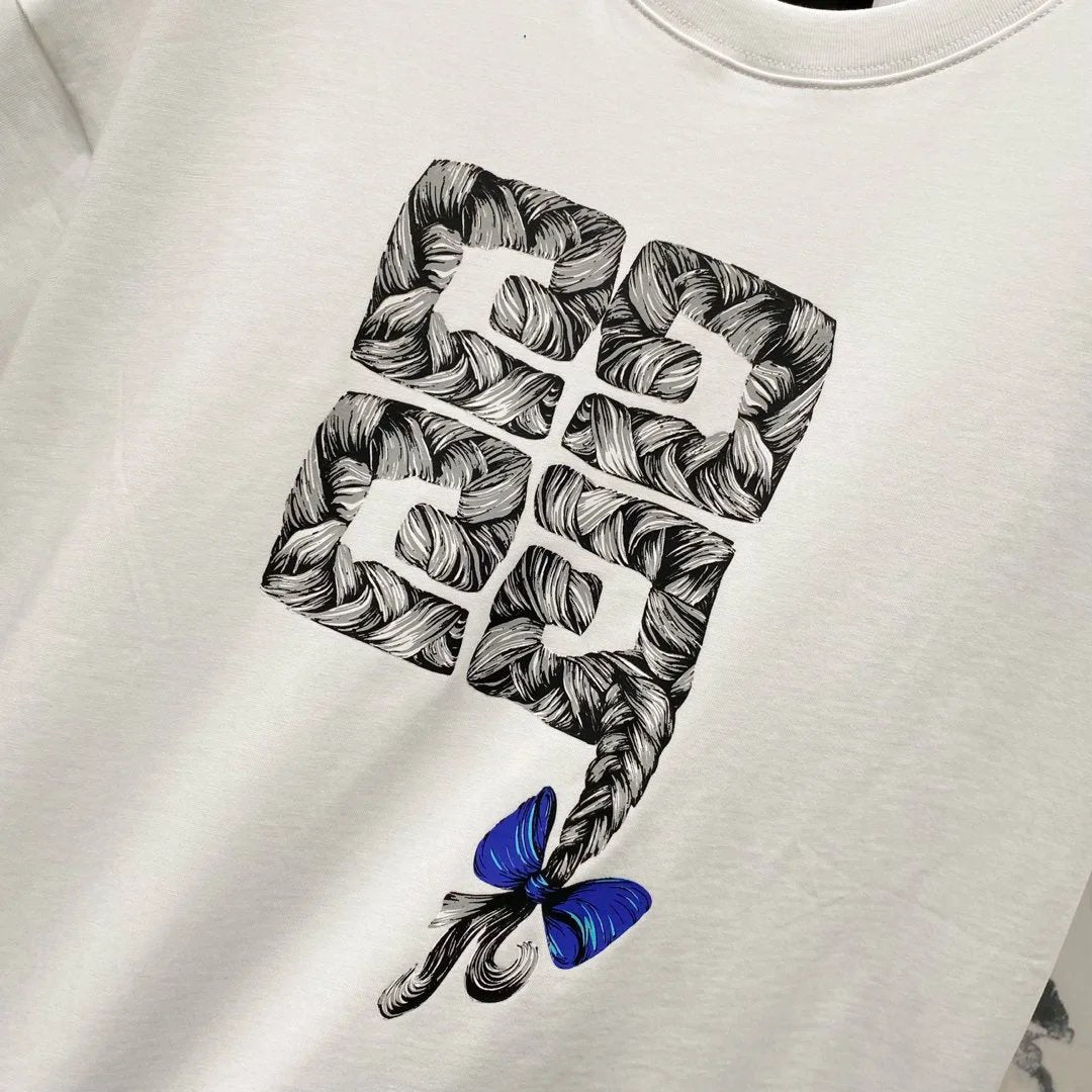 Givenchy T-shirt Chest Twine Bowknot Print logo round Neck Short Sleeve25ss New pure cotton T Unisex T-Shirt OS Loose Fit Base Shirt Top Half Sleeve T-Shirt