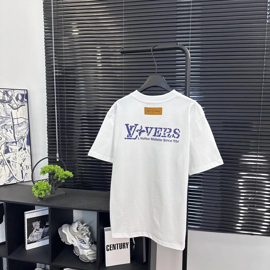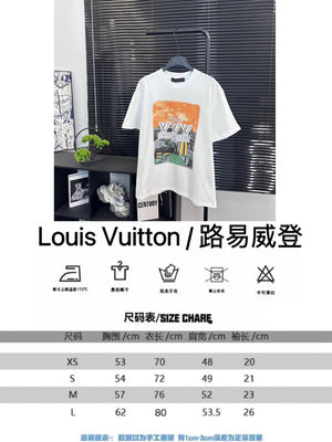 Louis Vuitton LV T-shirt Cityscape Digital Rhinestone Embroidery logo round Neck Short Sleeve25ss New Pure Cotton Unisex Style T Casual T-Shirt Base Layer Shirt OS Loose Fit Half Sleeve Top Plus Size