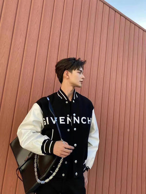Givenchy Jackets Classic Embroidered Letters Leather Sleeve Stitching Woolen Baseball Uniform Jacket Coat for Men and Women