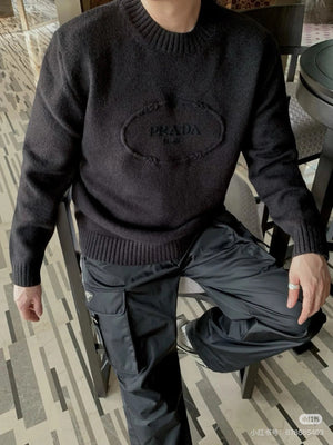 PRADA Sweater Classic Embroidered Sweater with Lock Closure Logo Embroidered Subtle Pattern Crew Neck Pullover Sweater os Knitted Sweater Base Layer for Men and Women Same Style24ss Autumn and Winter New Products
