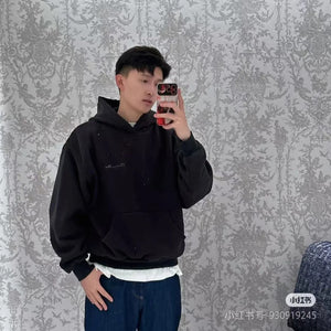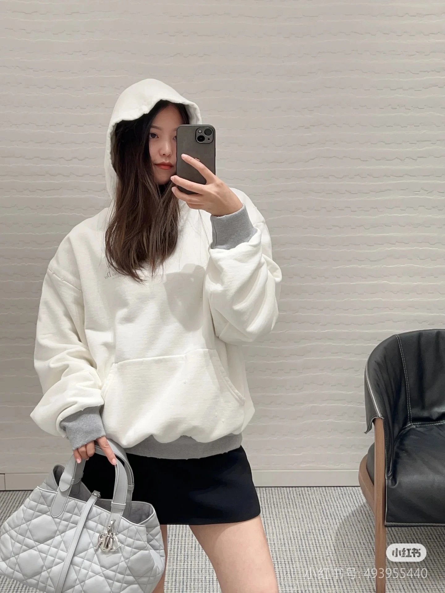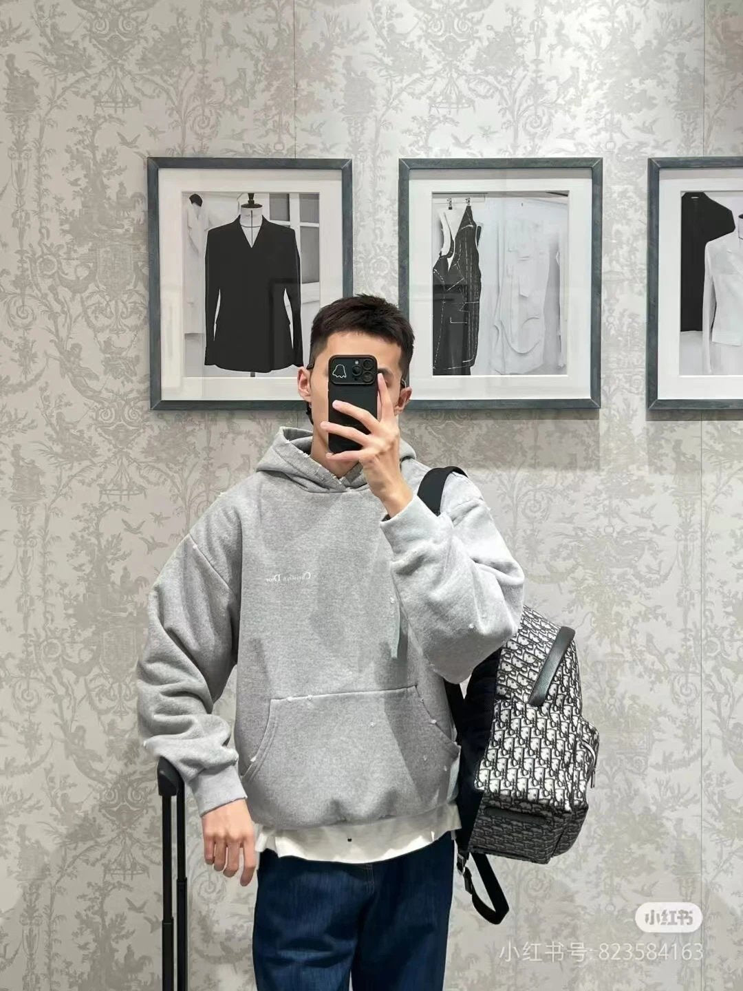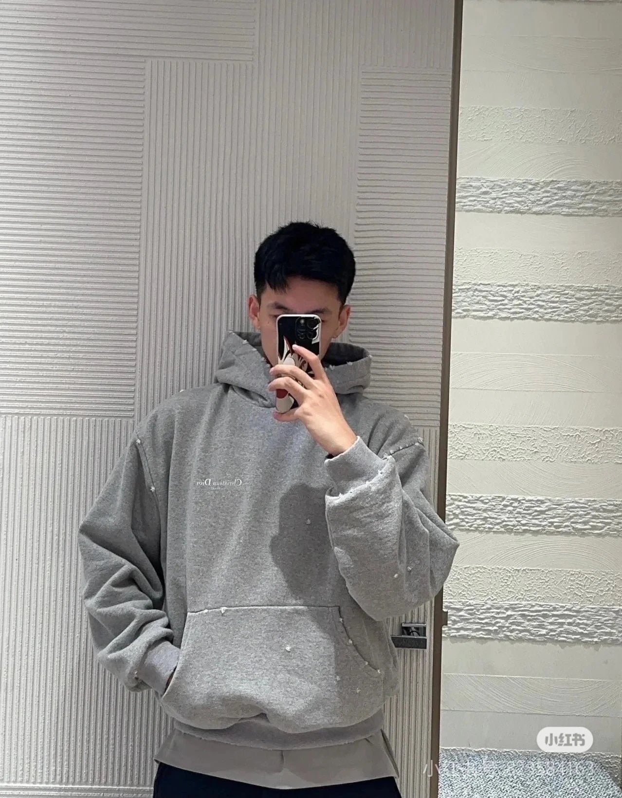 DIOR/Dior Classic Front and Back English Letter Hoodie Pure Cotton High Weight Fabric Front and Back Imported Printing Technology Frayed Design Loose Fit Full Set of Accessories Soft and Thick Fabric Three Labels Complete Unisex