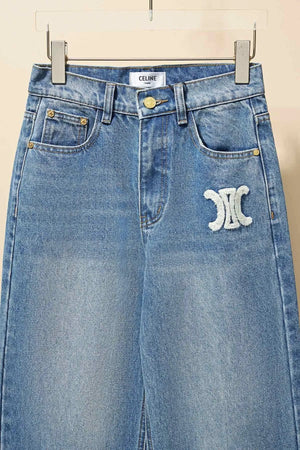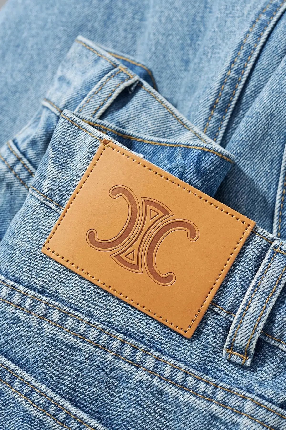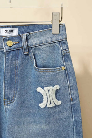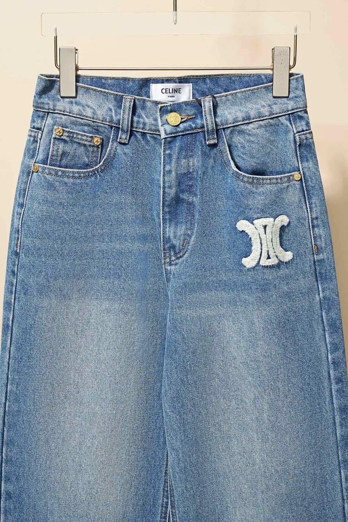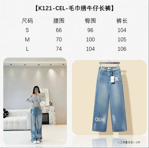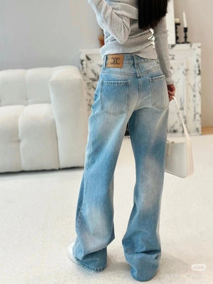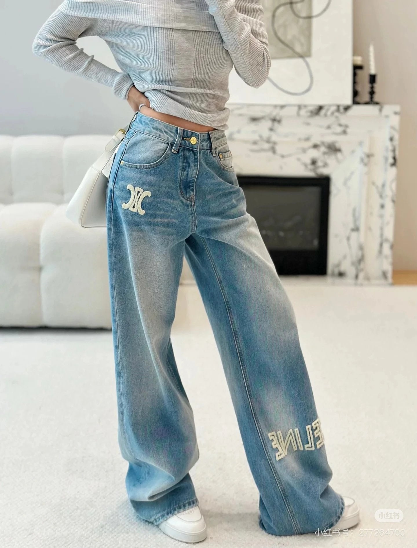 Top Version CE*IN Arc de Triomphe Classic Gradient Fleece Jeans Washed Long Pants Women Versatile Casual