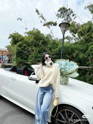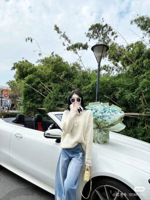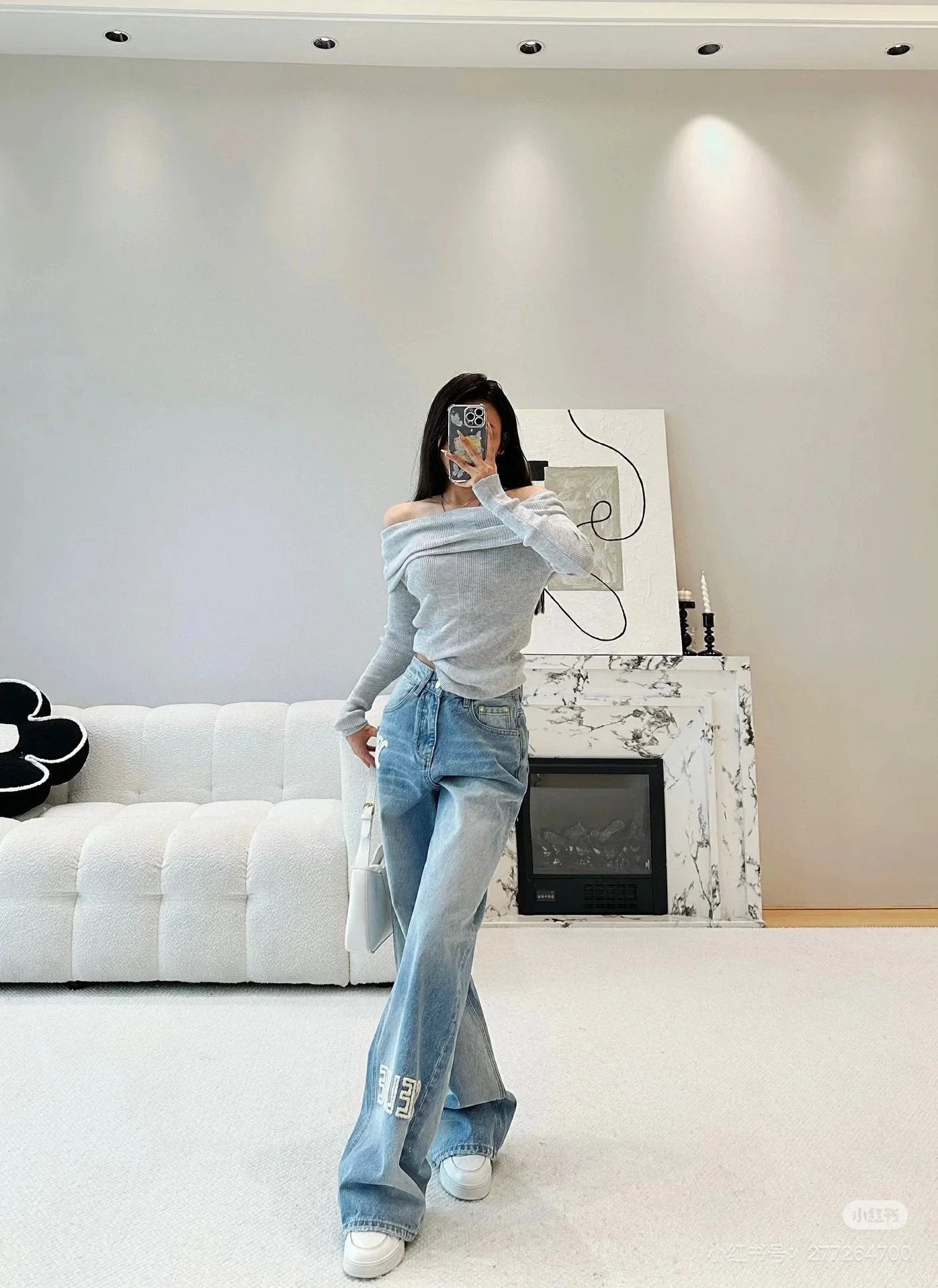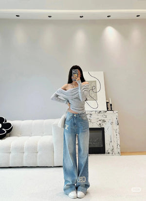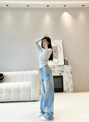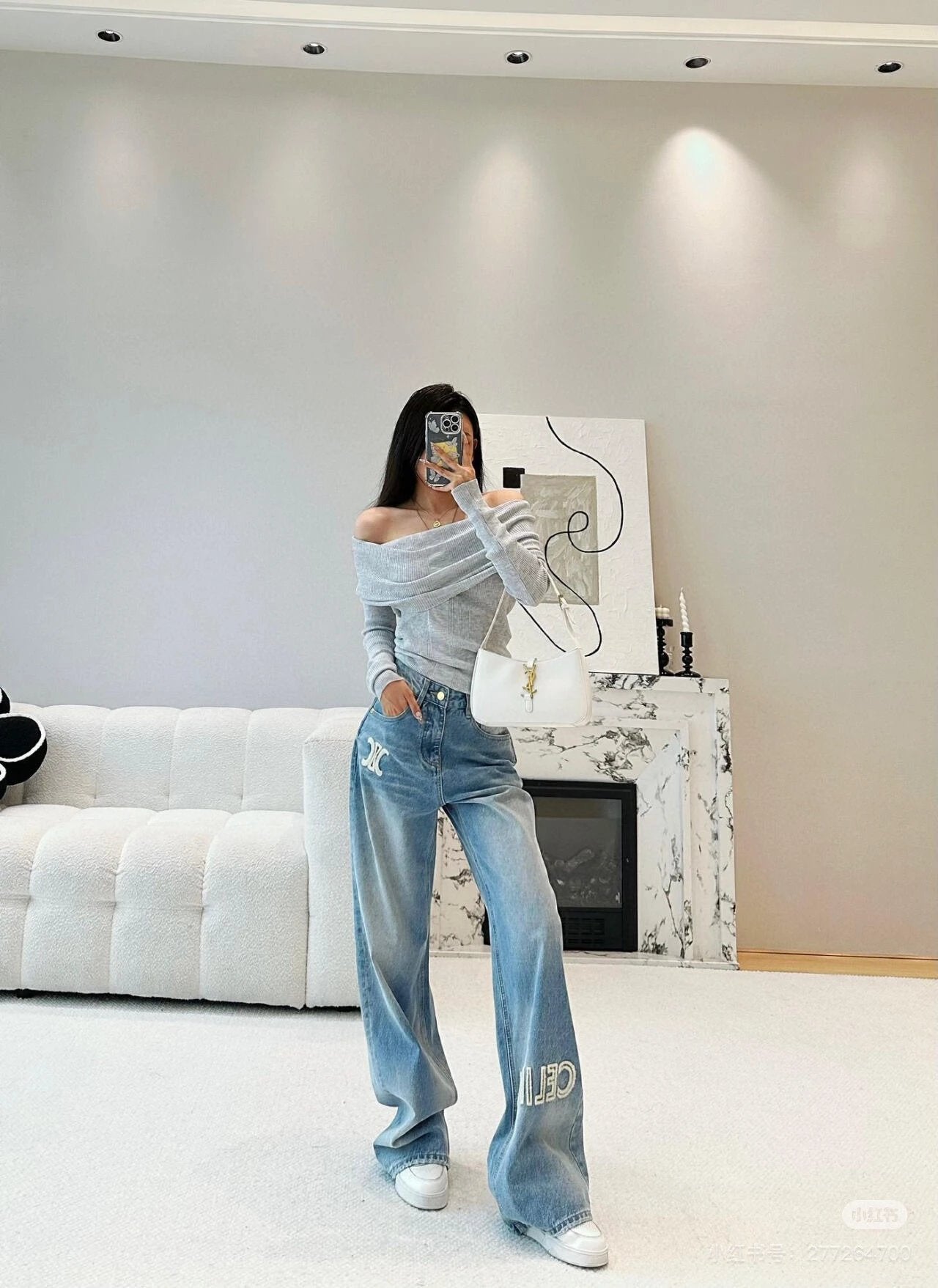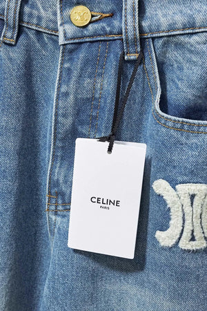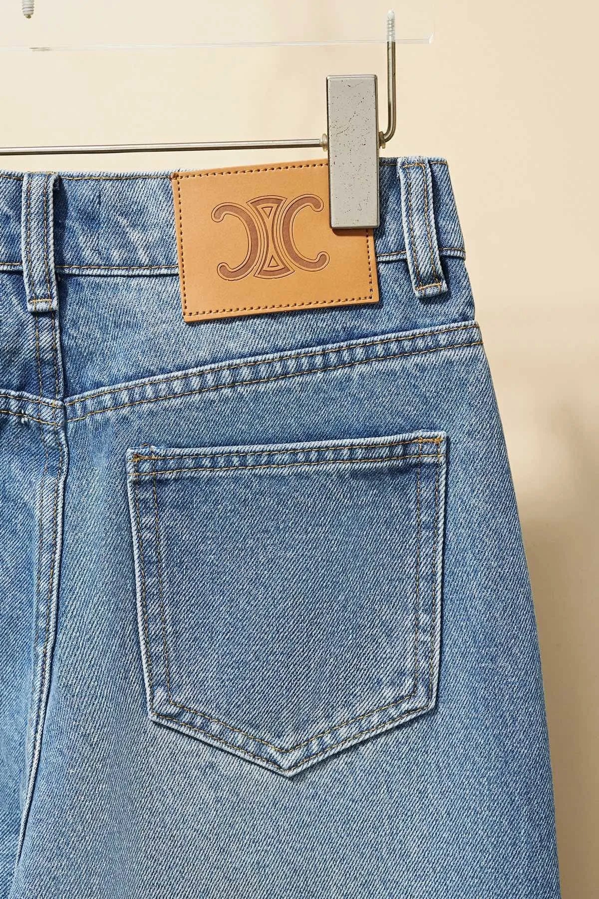 Top Version CE*IN Arc de Triomphe Classic Gradient Fleece Jeans Washed Long Pants Women Versatile Casual