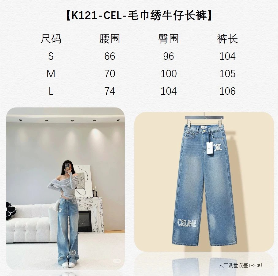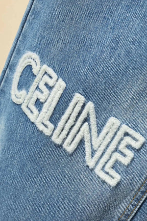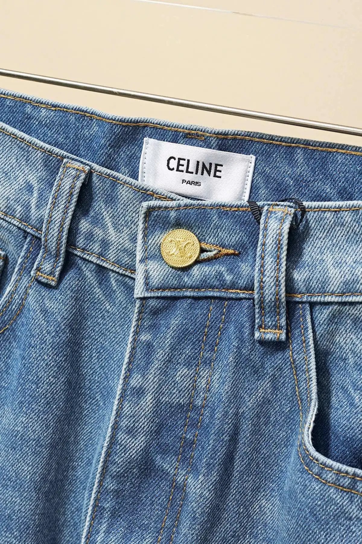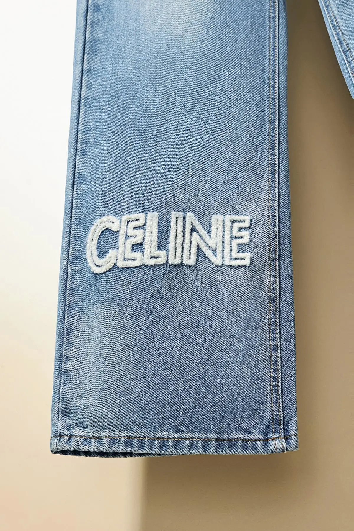 Celine Jeans Classic Gradient Fleece-Lined Jeans Washed Long Pants Women Versatile Casual
