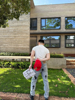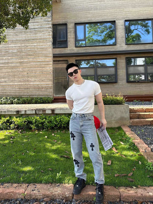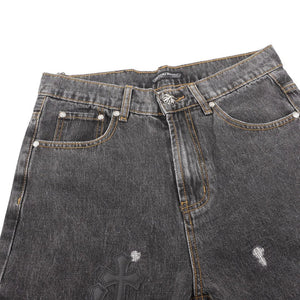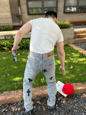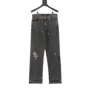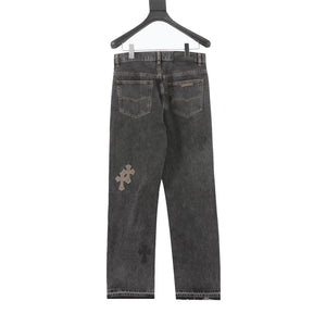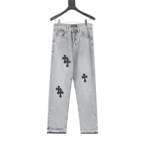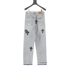 Chrome Hearts Jeans Classic Leather Tag Cross Denim Trousers for Men and Women