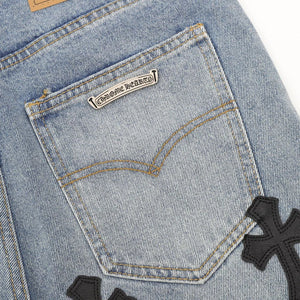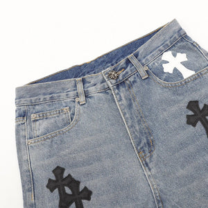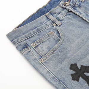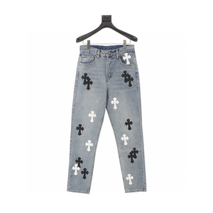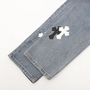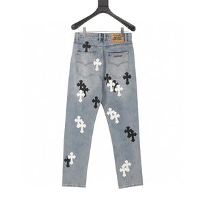 Chrome Hearts Jeans Classic Leather Tag shi Word Rack Denim Trousers for Men and Women