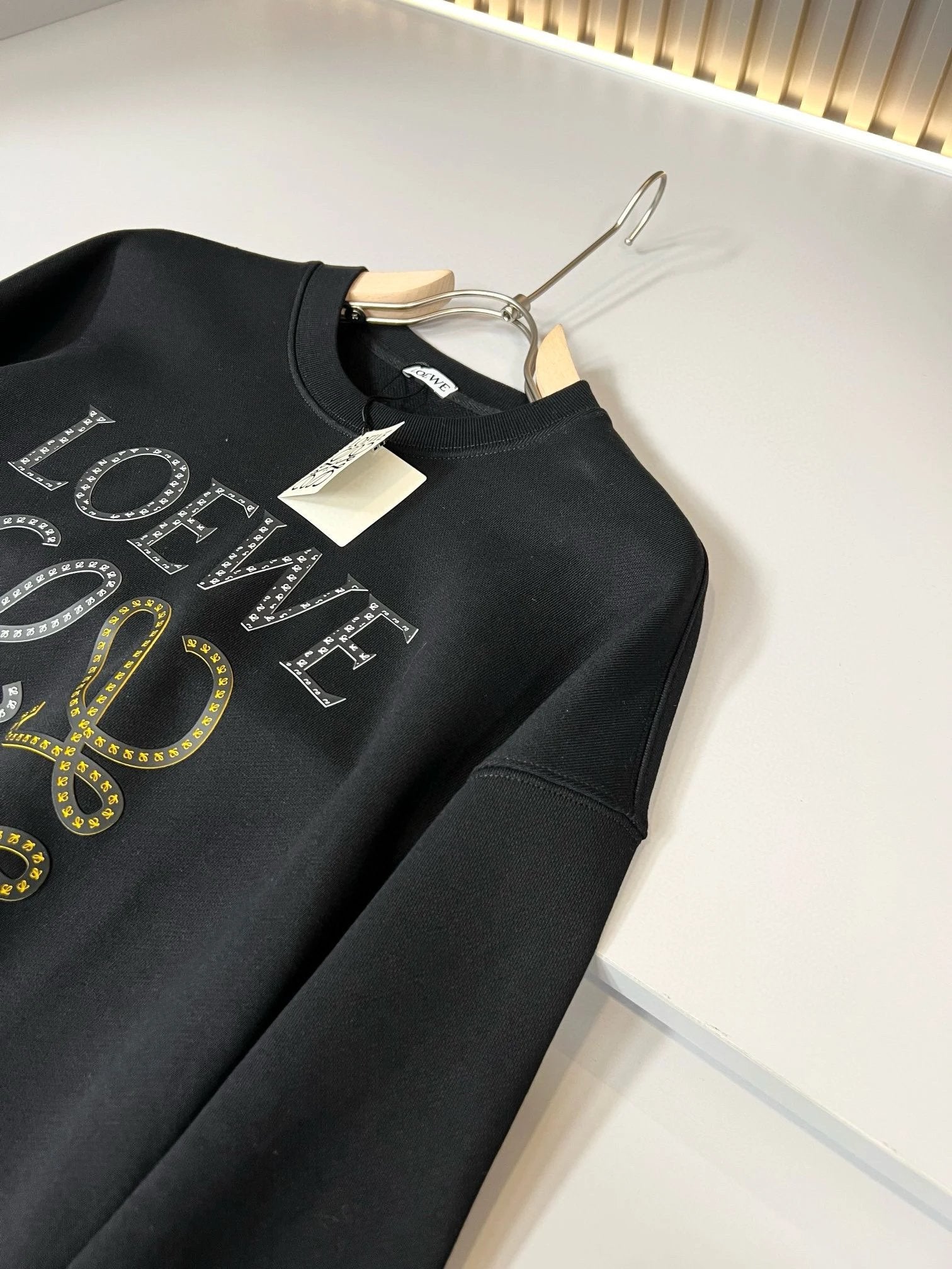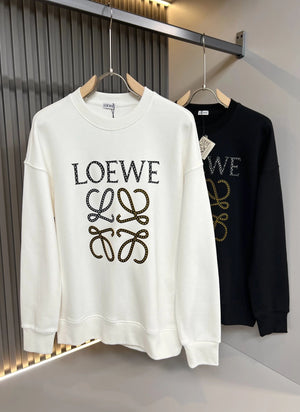 LOEWE Hoodie Classic Logo Printed Round Neck Sweatshirt Casual Loose Fit Versatile Pullover Sportswear os Stylish Inner Layer Top24ss Autumn and Winter New Products