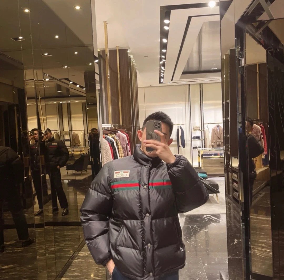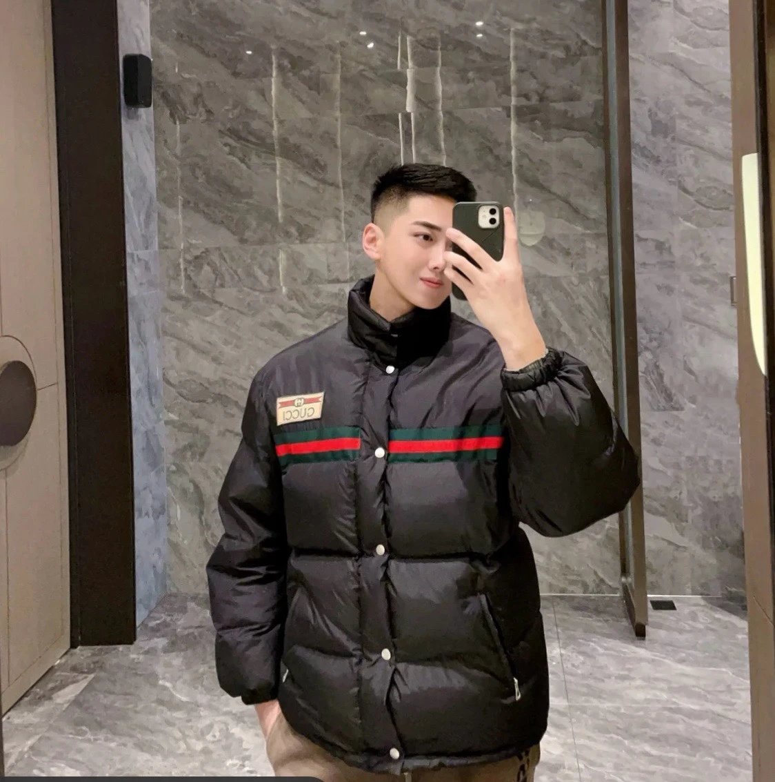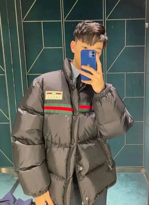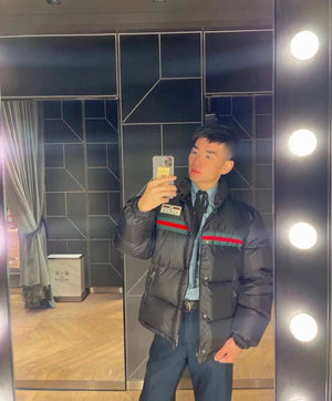 Gucci?????GC 24FW Classic Logo Red and Green Webbing Down Jacket