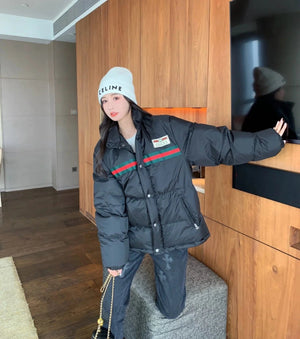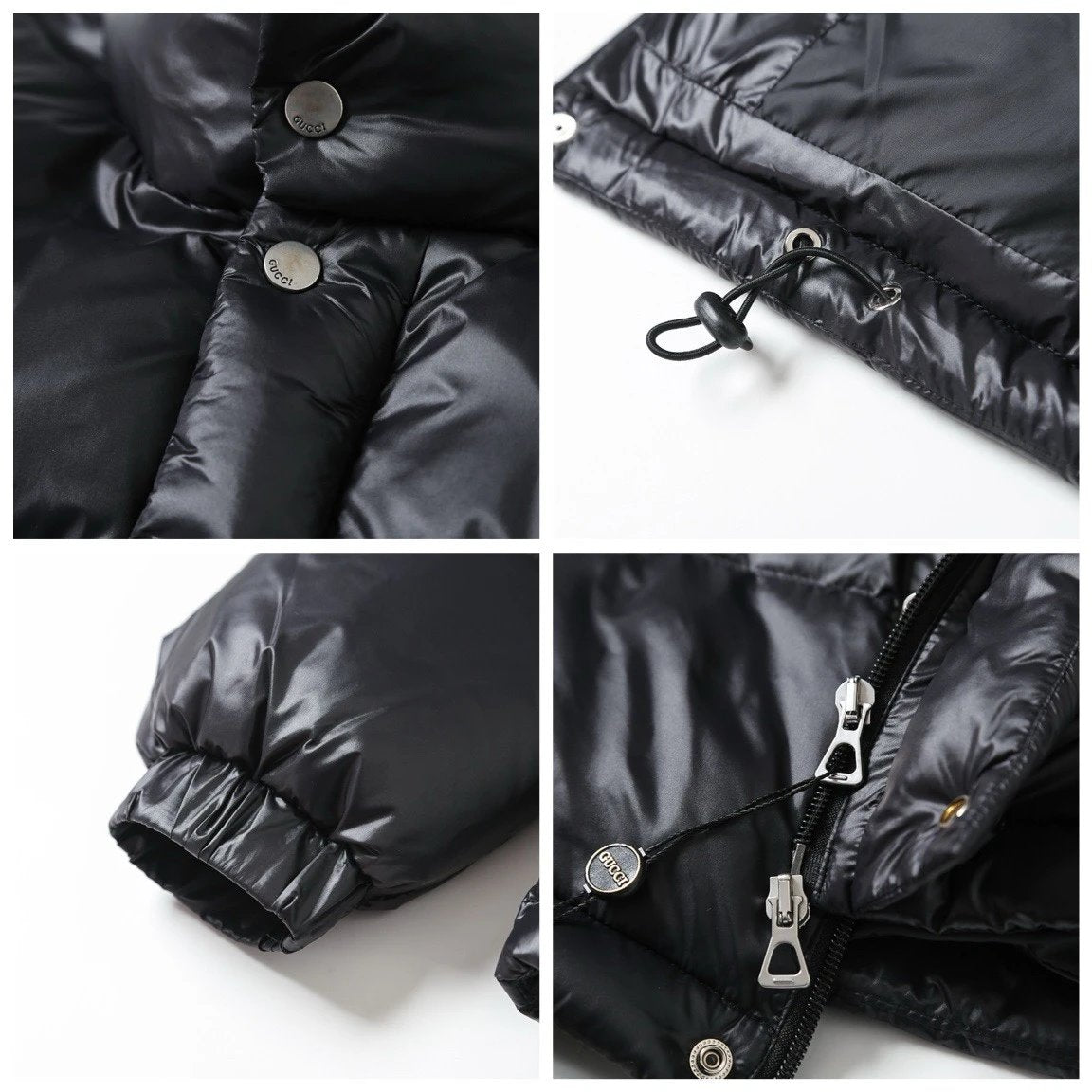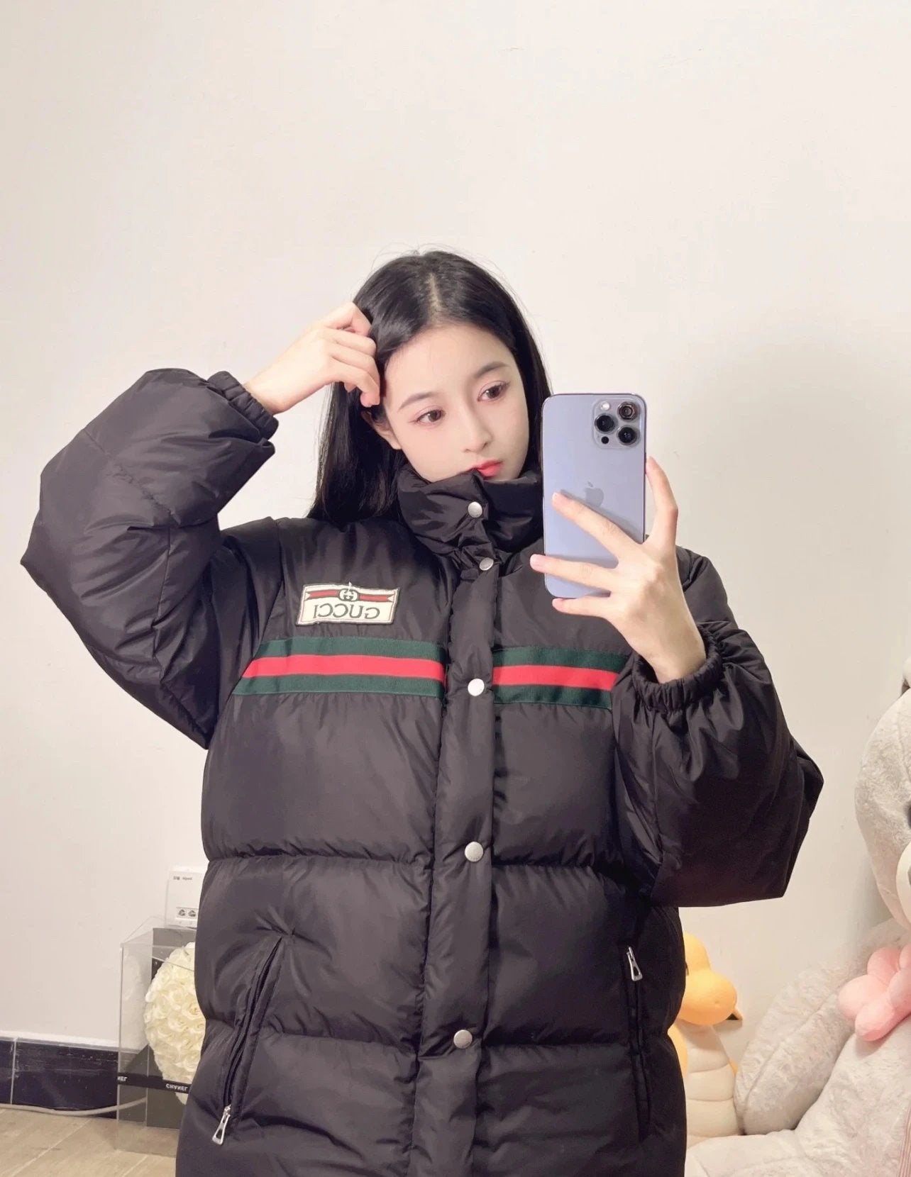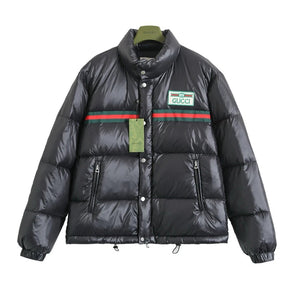 Gucci Down Jacket Classic Logo Red and Green Webbing Down Jacket Casual Loose Thickened Warm Stand Collar Short White Duck Down Puffer Jacket Unisex24ss New Winter Products
