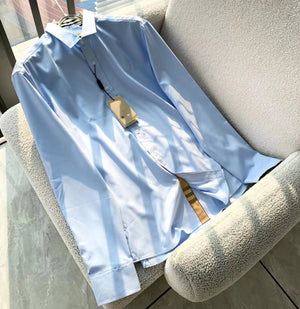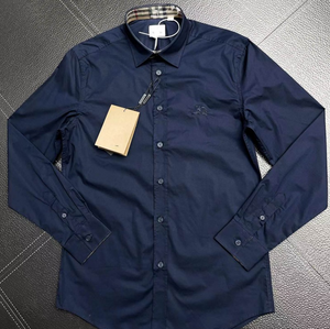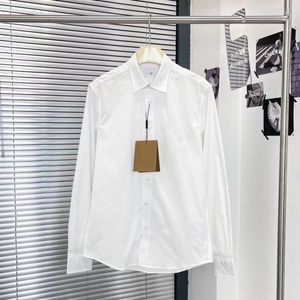Burberry Shirt Classic New Letter Long Sleeve Shirt Men's Casual Business Embroidery White Solid Color High Texture Shirt