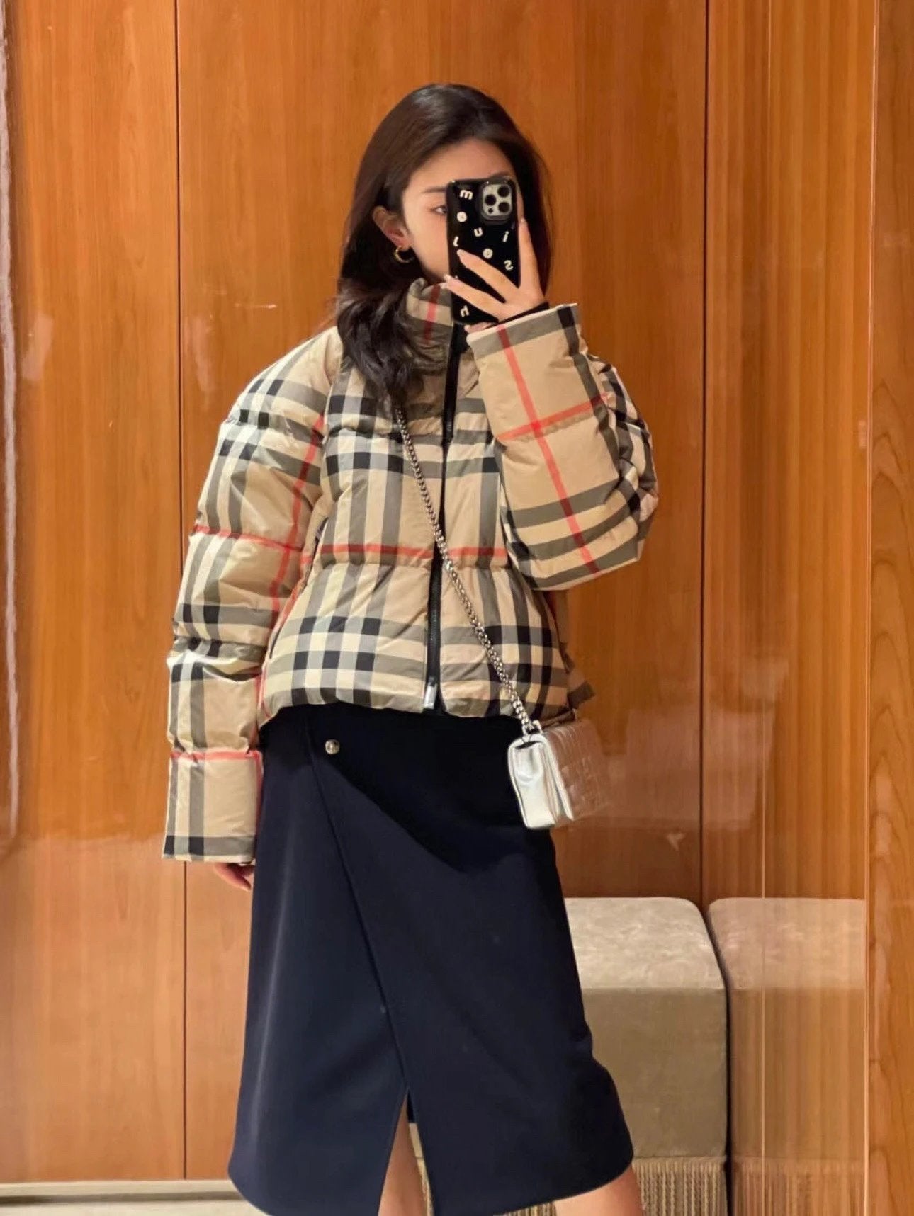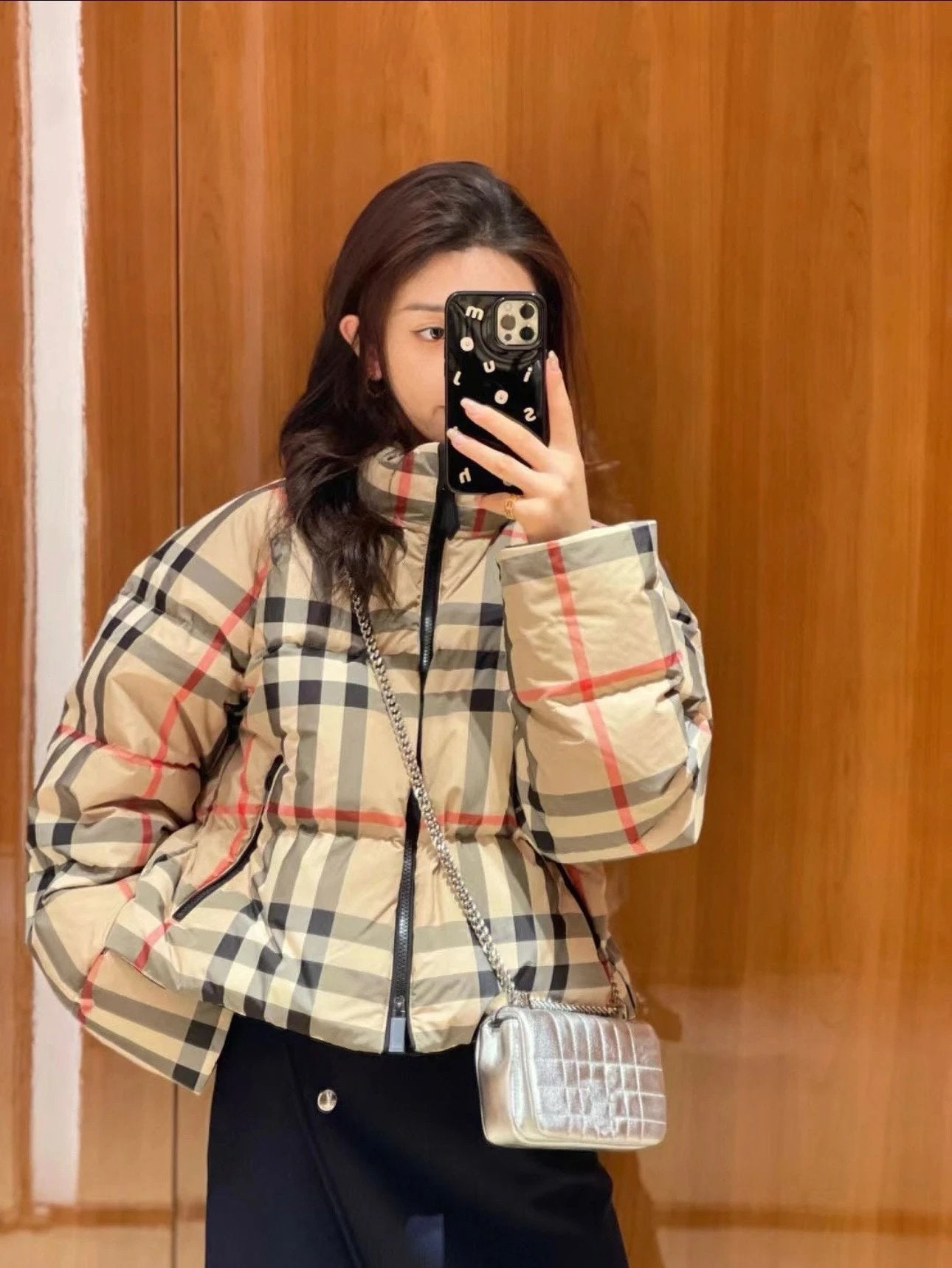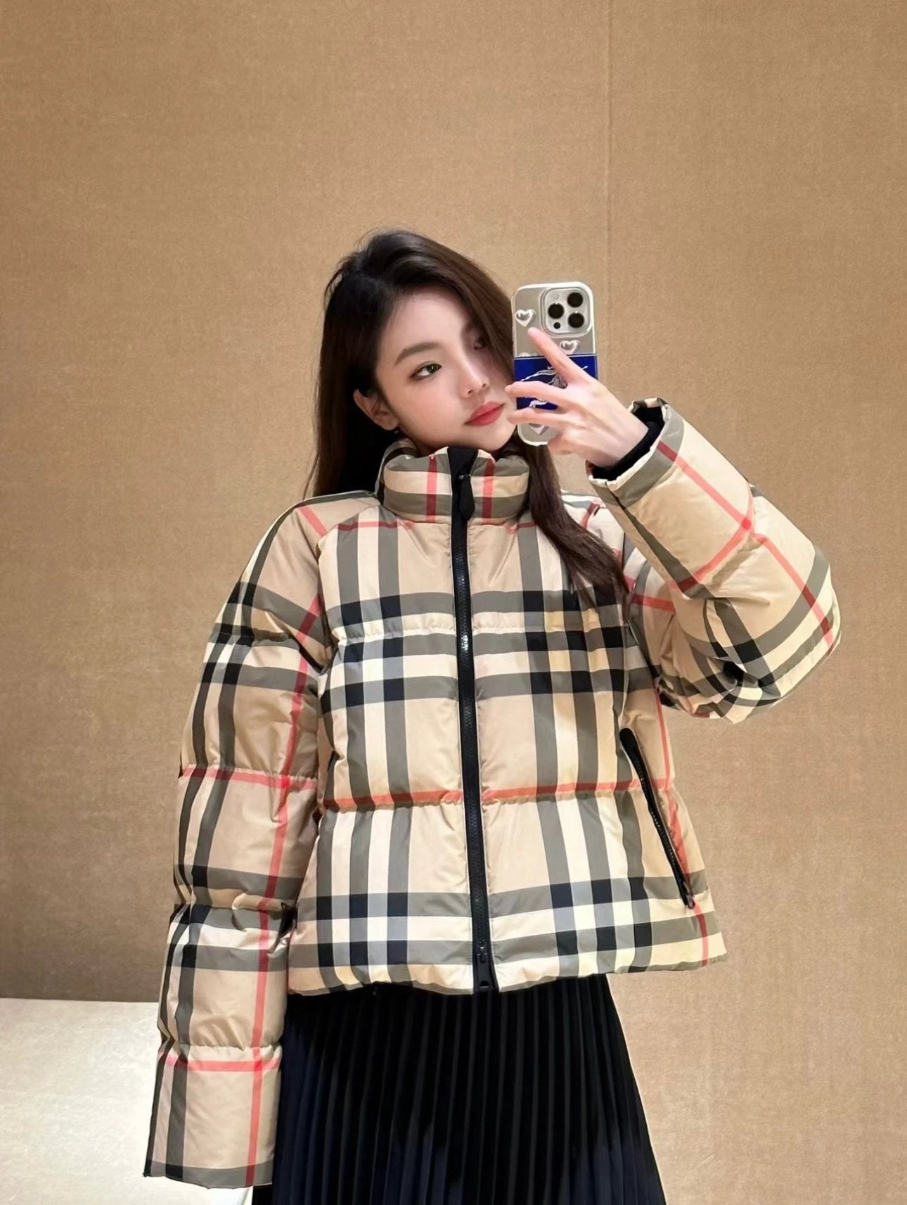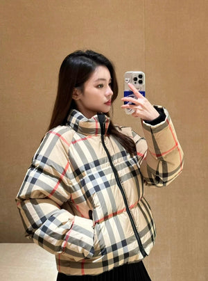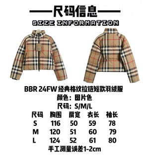 Burberry????????BBR 24FW Classic Plaid Zipper Short Down Jacket