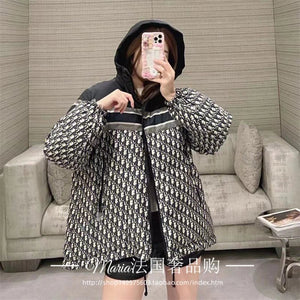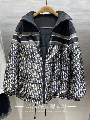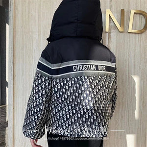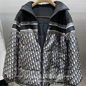 Dior Jackets Classic Presbyopic Letter Double-Sided Striped Hooded down Jacket Men's Cotton Clothing Jacket Coat for Women