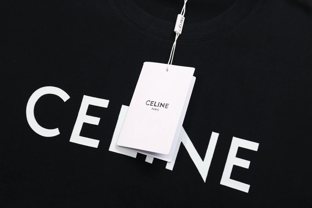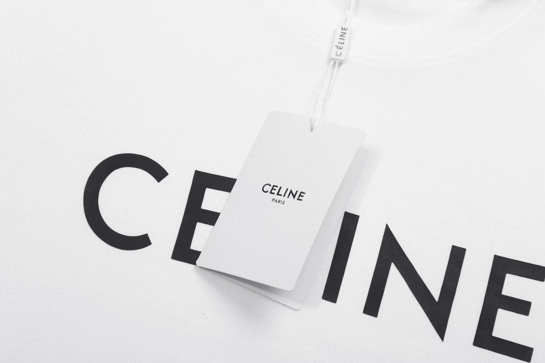Top Version Celine Classic Style Front Print Logo Crew Neck Short Sleeve 25SS New Pure Cotton Unisex T-Shirt OS Loose Fit Base Shirt Half Sleeve Top Tee