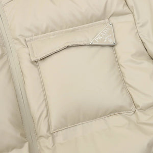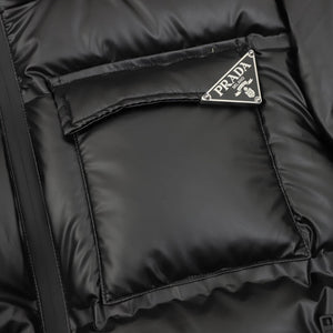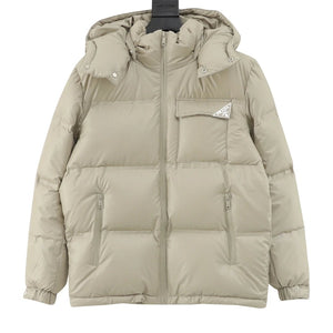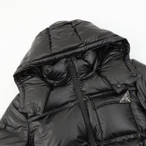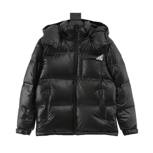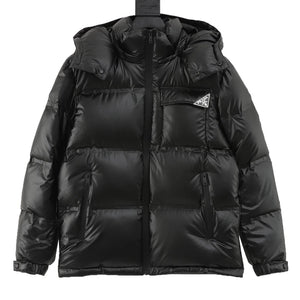 PRADA Down jacket Classic Triangle Mark Hat Removable down Jacket Men and Women Same Style