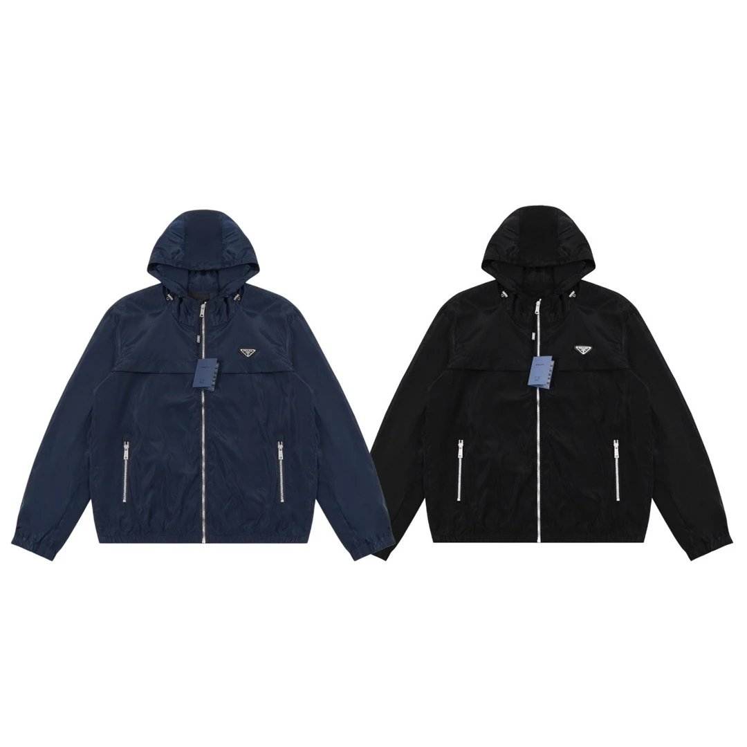 PRADA Jackets Classic Triangle Metal Badge Zipper Jacket Waterproof Windproof Classic Triangle Metal Badge Couple Zipper Jacket