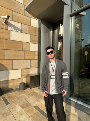 Thom Browne Sweater Classic Yarn-Dyed Cardigan Sweater for Men and Women