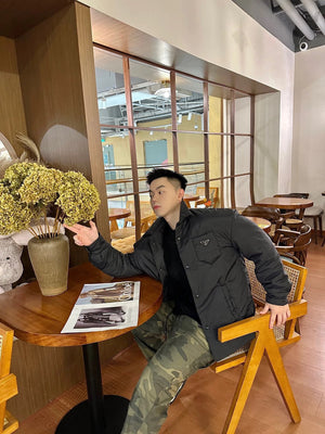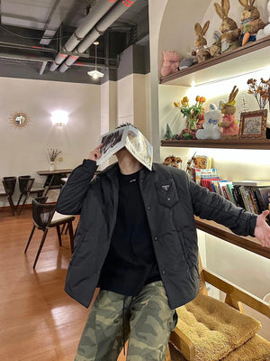 PRADA Down jacket Coat Triangle Mark Nylon Base Cotton Coat Jacket Same Style for Men and Women