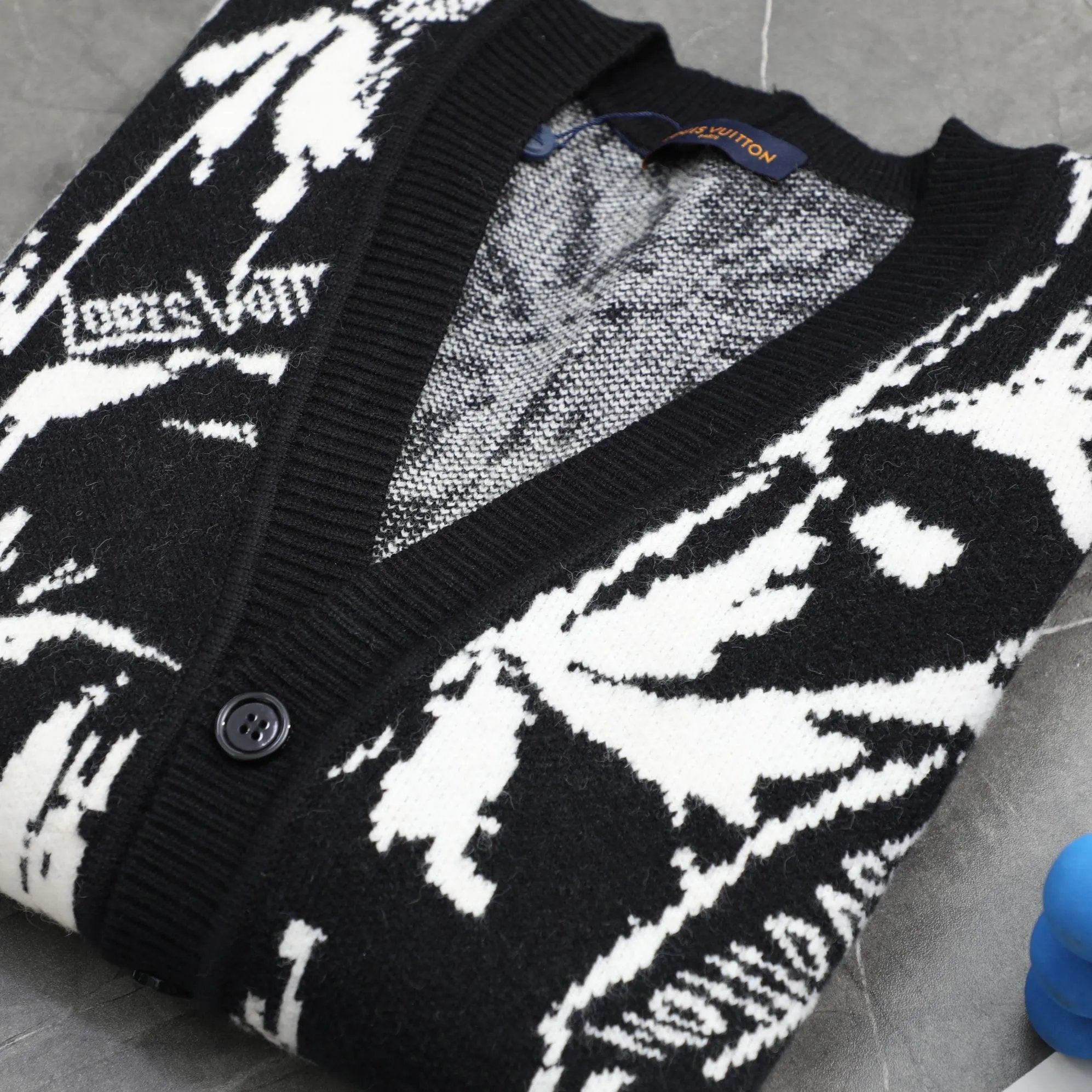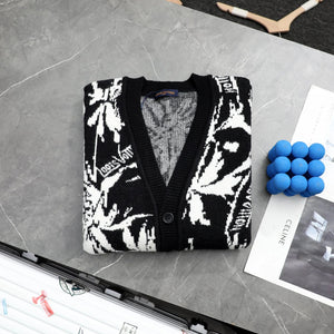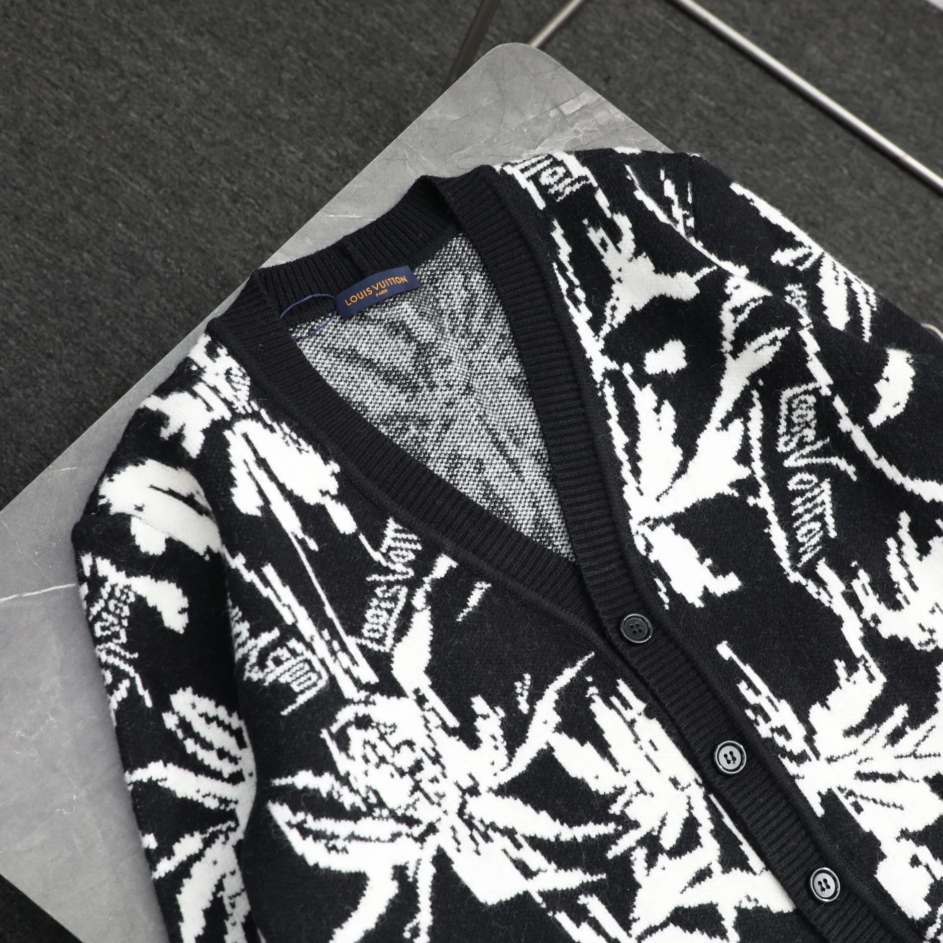 Dior Sweater Coconut Tree Jacquard Wool Cardigan Sweater Unisex Outerwear Long Sleeve Soft Lazy Style Sweater Coat Thickened Versatile Casual Wear