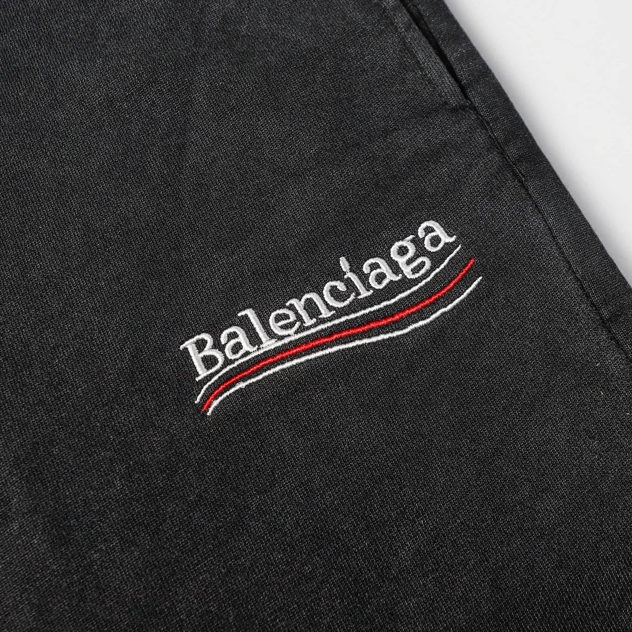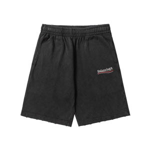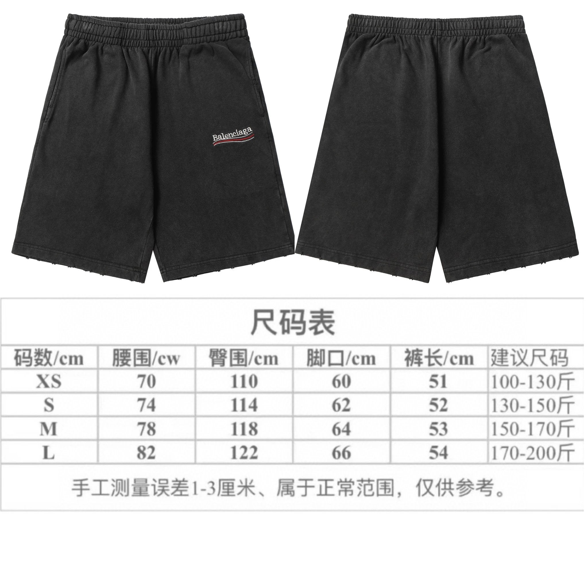 Top Version BALENCI*GA Balenciaga Classic Heavy Distressed Wave Embroidered Shorts Five-Point Drawstring Heavy American Casual Summer Pants Five-Point Shorts Casual Sports Pants Unisex