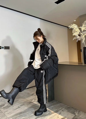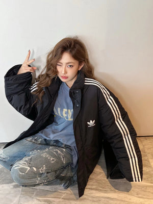 Collaboration Runway Style Three-Bar Cocoon Cotton Jacket Casual Loose Versatile Thickened Warm Bread Jacket OS Version Unisex 24SS Winter New Arrival