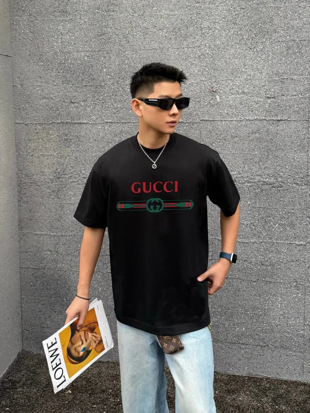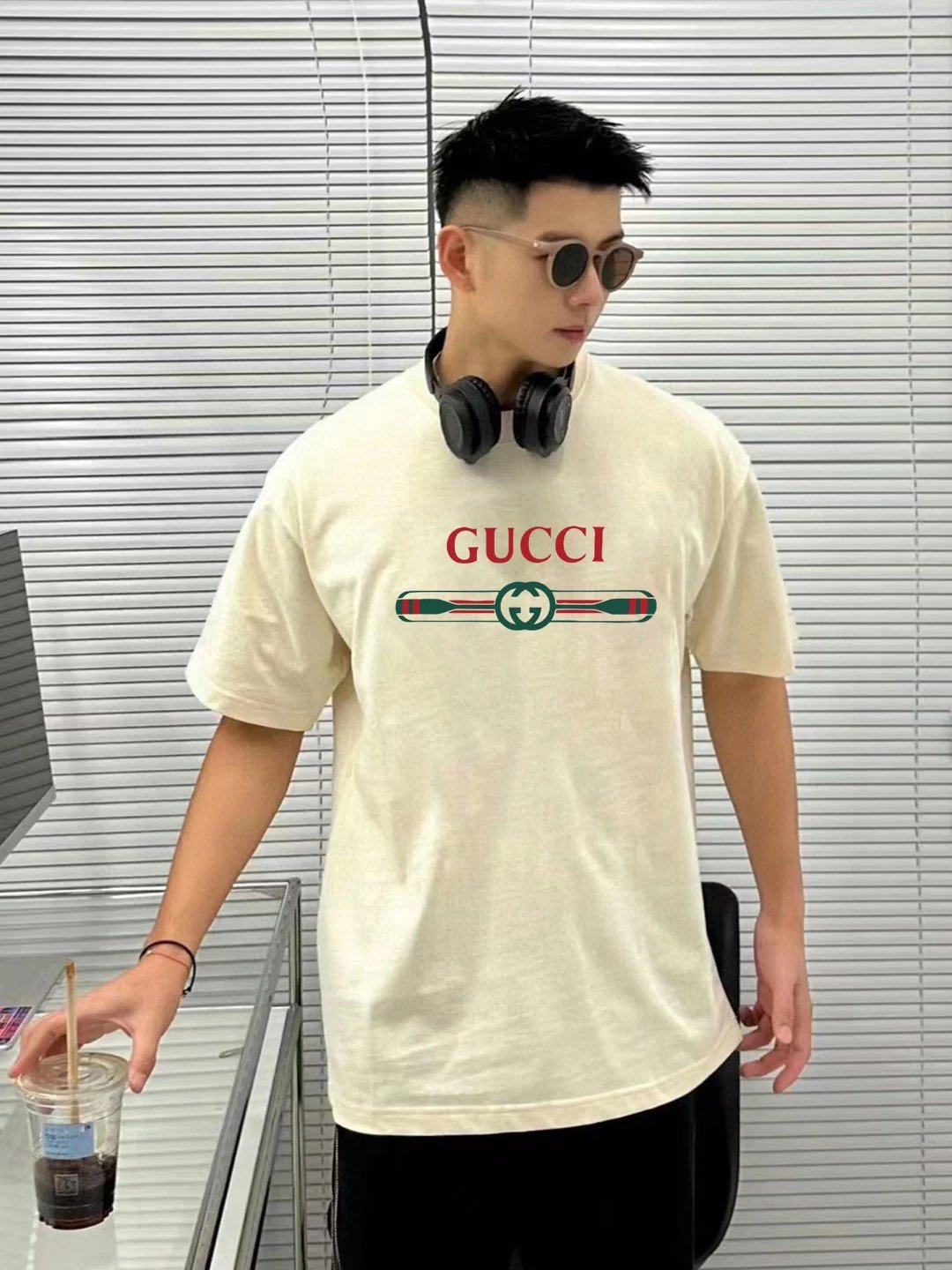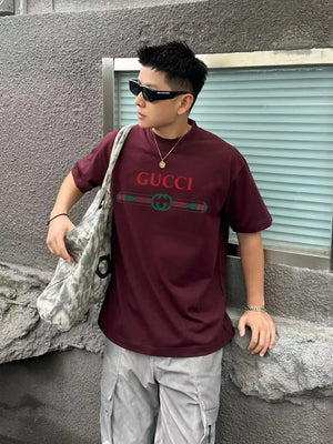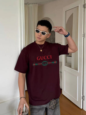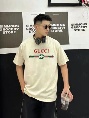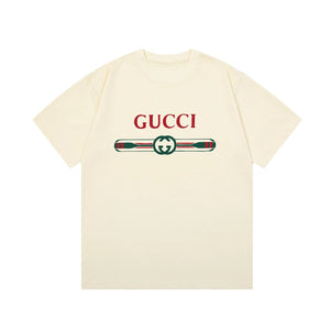 Gucci T-shirt Color-Block Belt with Letter Print logo round Neck Short Sleeve25ss New pure cotton T Unisex T-Shirt OS Loose Fit Base Shirt Top Half Sleeve T-Shirt
