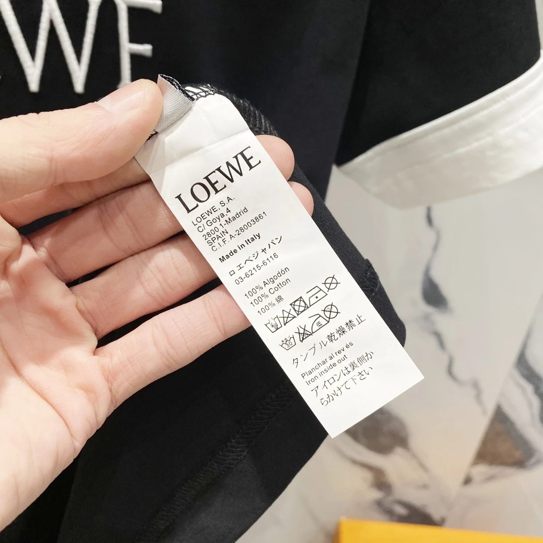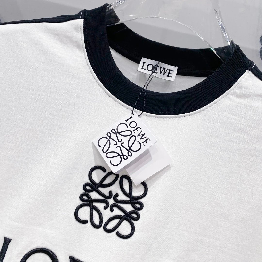 LOEWE T-shirt Color-Block Embroidered Letters LOGO Patchwork Design Logo