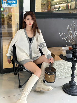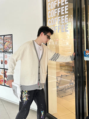 Thom Browne Sweater Color Matching Wool Cardigan Sweater for Men and Women