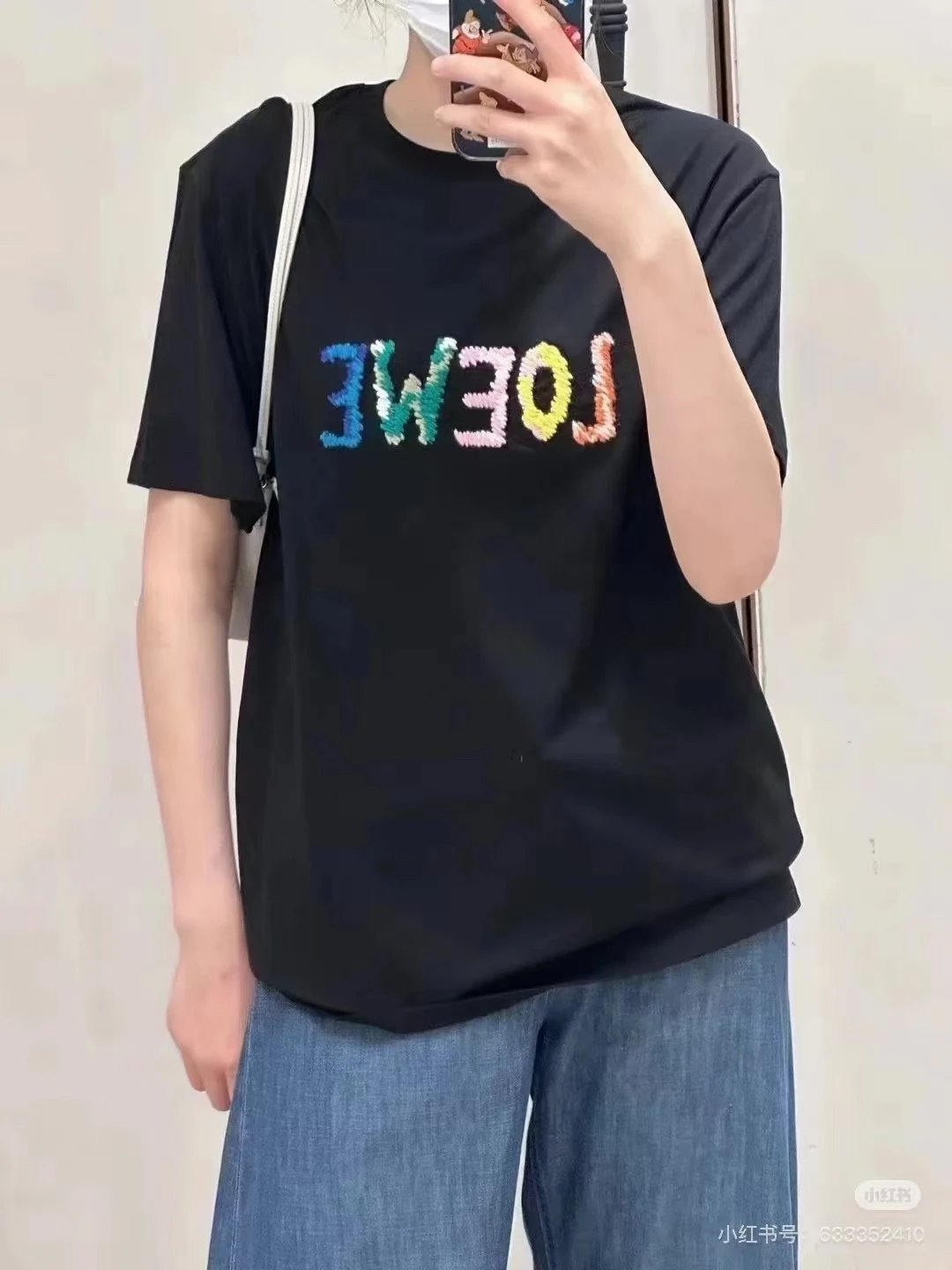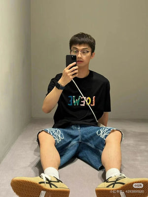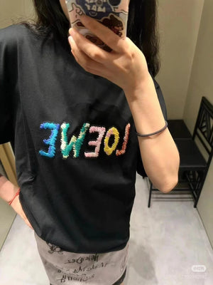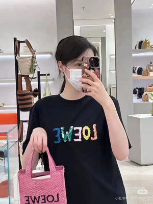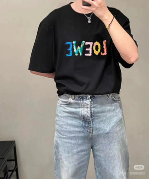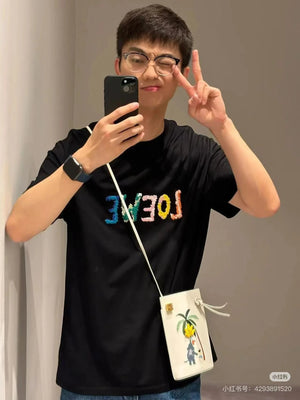 LOEWE T-shirt Colorful Graffiti Letter Embroidery on the Chest logo round Neck Short Sleeve25ss New pure cotton T Unisex T-Shirt OS Drop Shoulder Loose Fit Base Shirt Top T-Shirt Short Sleeve