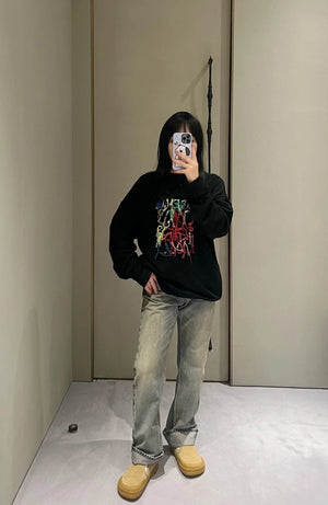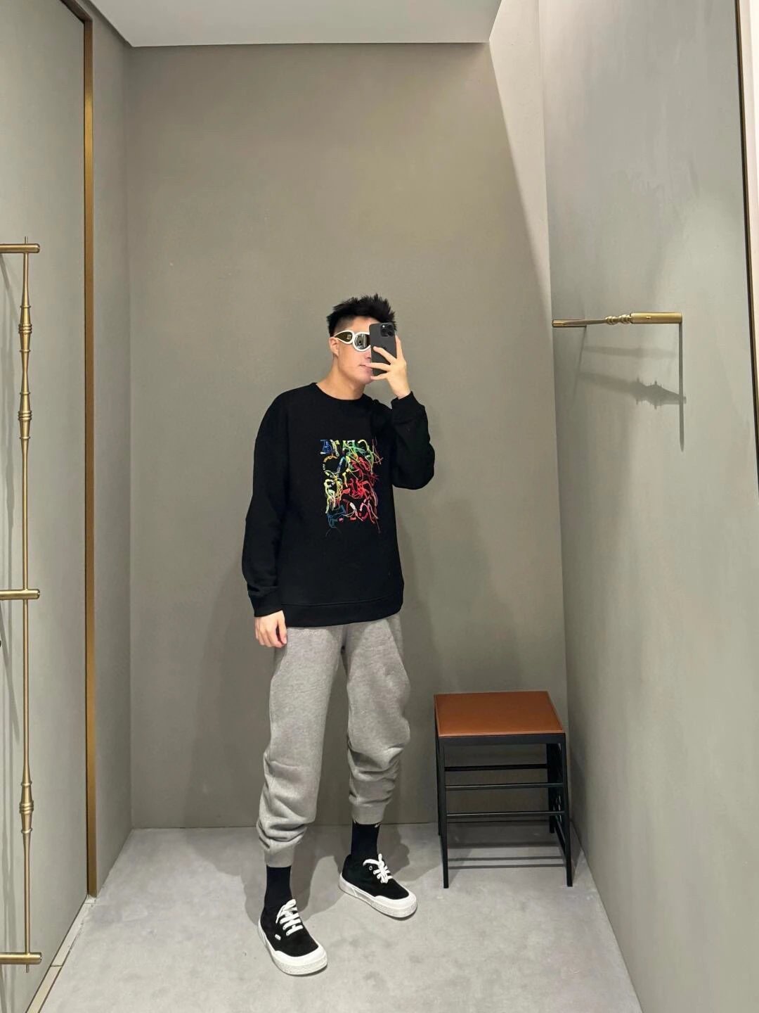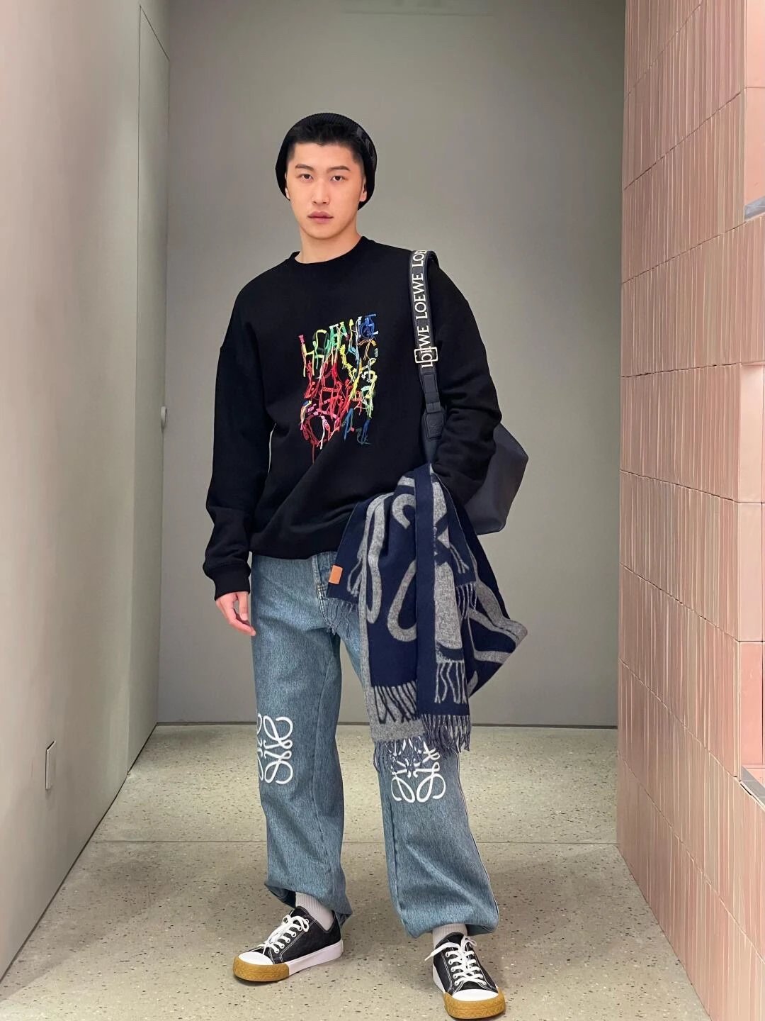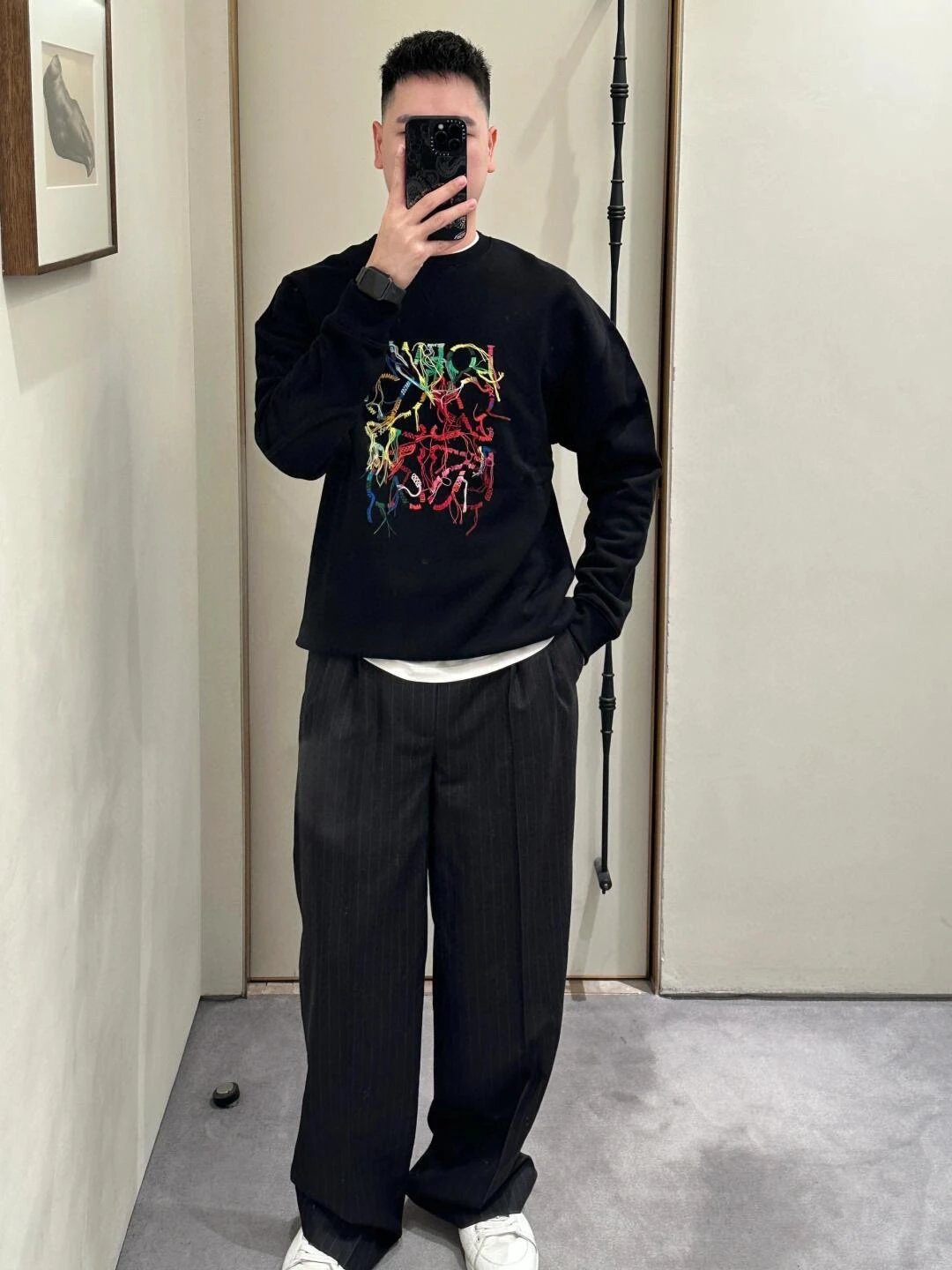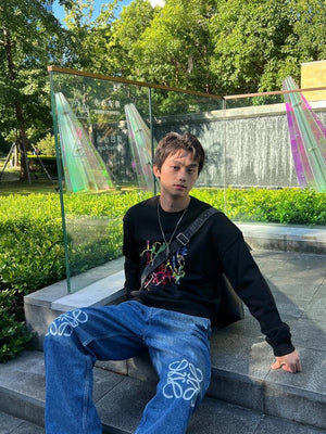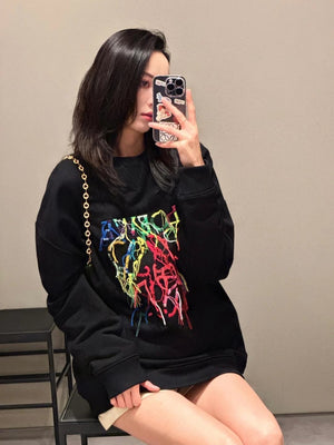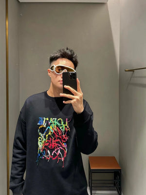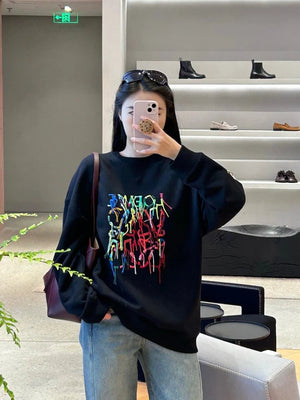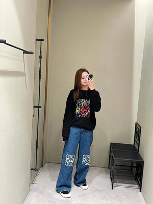 LOEW Loro Piana Colorful Tassel Embroidered Crewneck Sweatshirt Long Sleeve Base Shirt Outerwear Trendy Unisex Sports Casual OS Loose Fit Versatile Autumn Winter New Arrival
