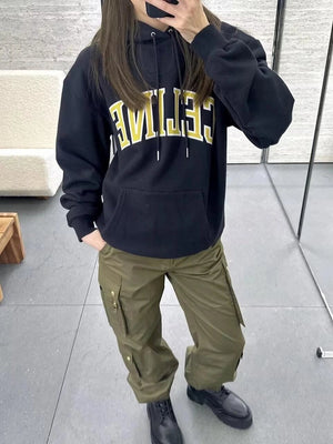 Celine Jackets Crackle Print logo Hooded Sweatshirt Hoodie Jacket Top Unisex Sports Casual Loose Fit Versatile