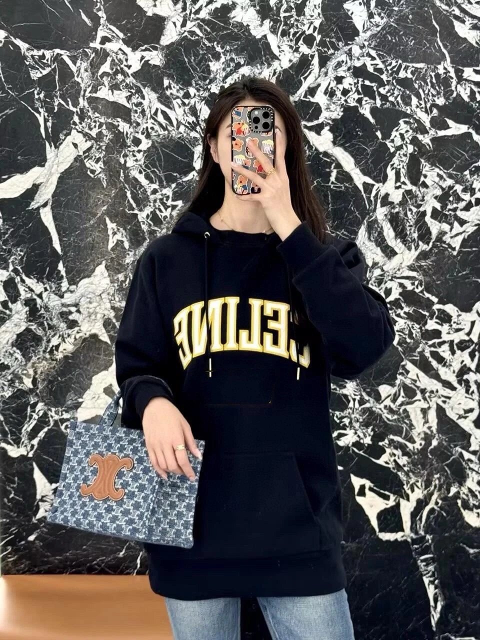 Celine Celine Crack Print Logo Hoodie Sweatshirt Jacket Unisex Sports Casual Loose Fit Versatile