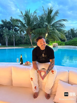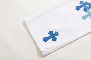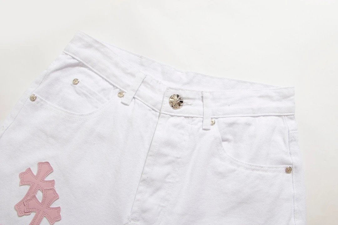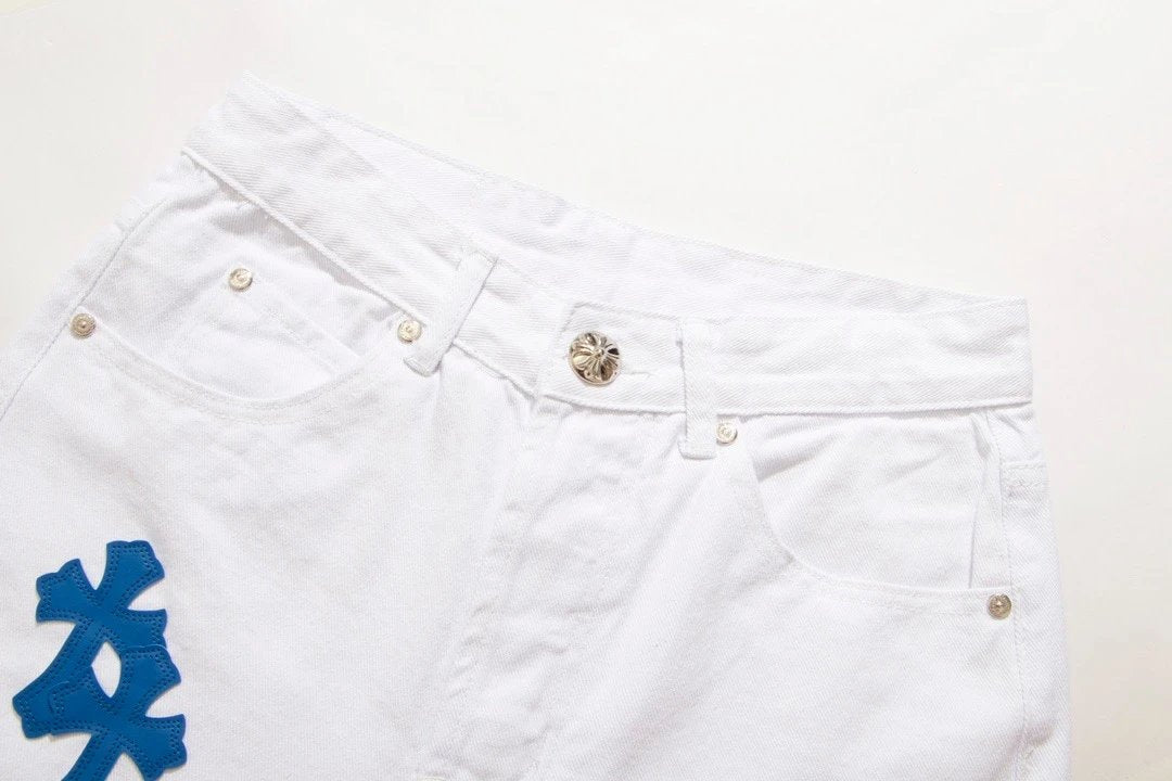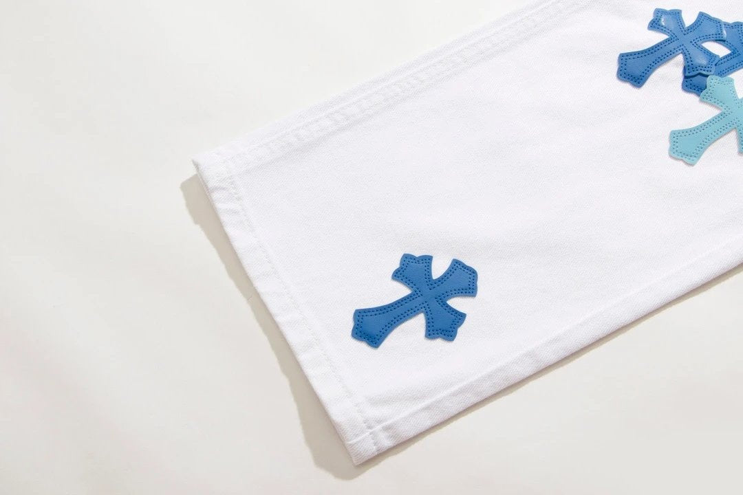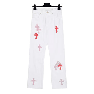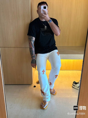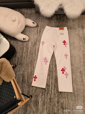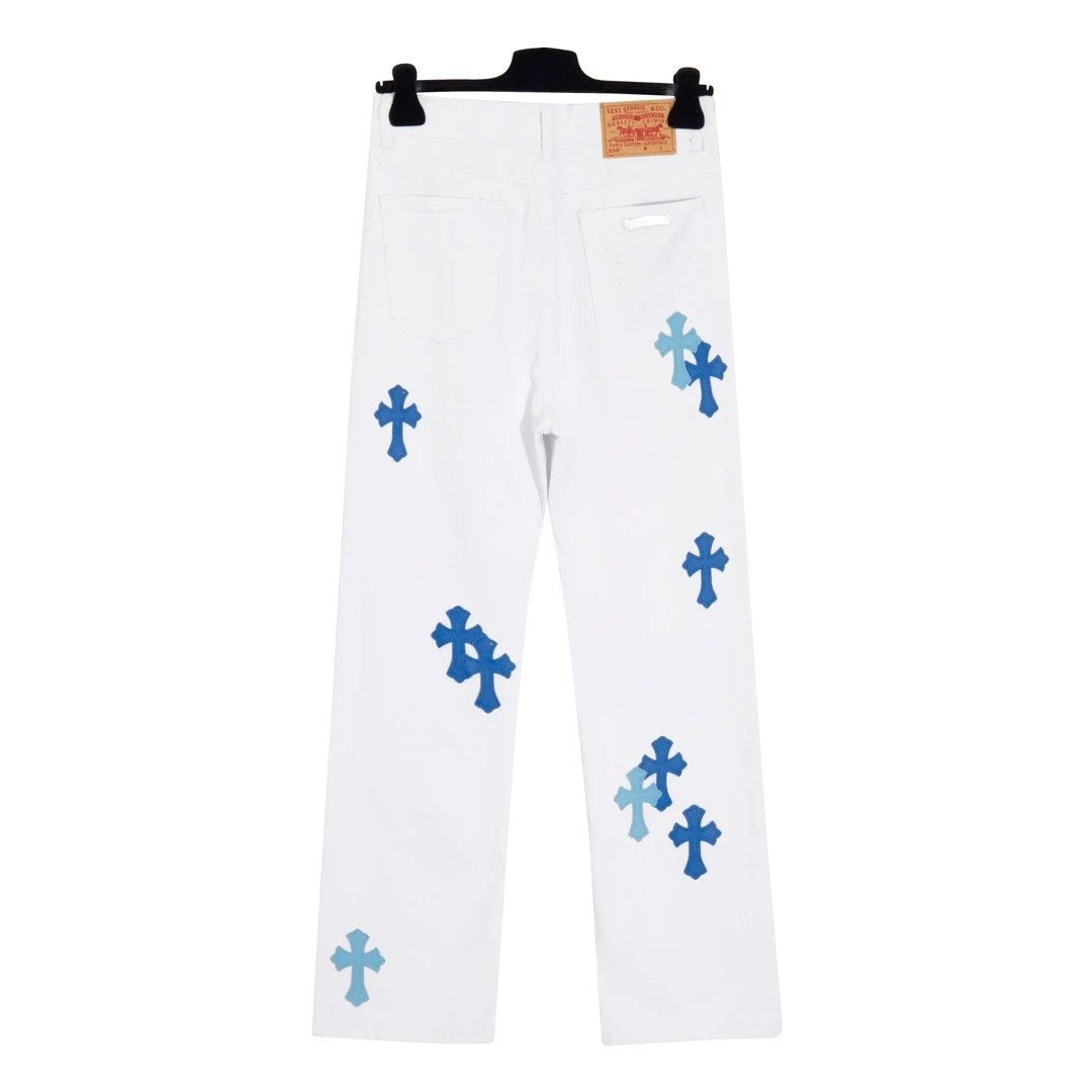 Chrome Hearts Jeans Cross Stitch Leather logo25ss Spring Summer New Straight Leg Jeans Unisex Slim Fit Long Pants Loose