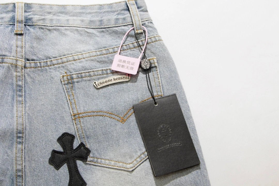 Chrome Hearts Jeans Cross Stitch Leather logo25ss Spring Summer New Straight Loose Jeans Unisex Slim Fit Long Pants