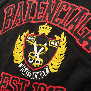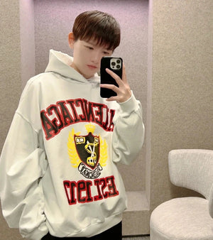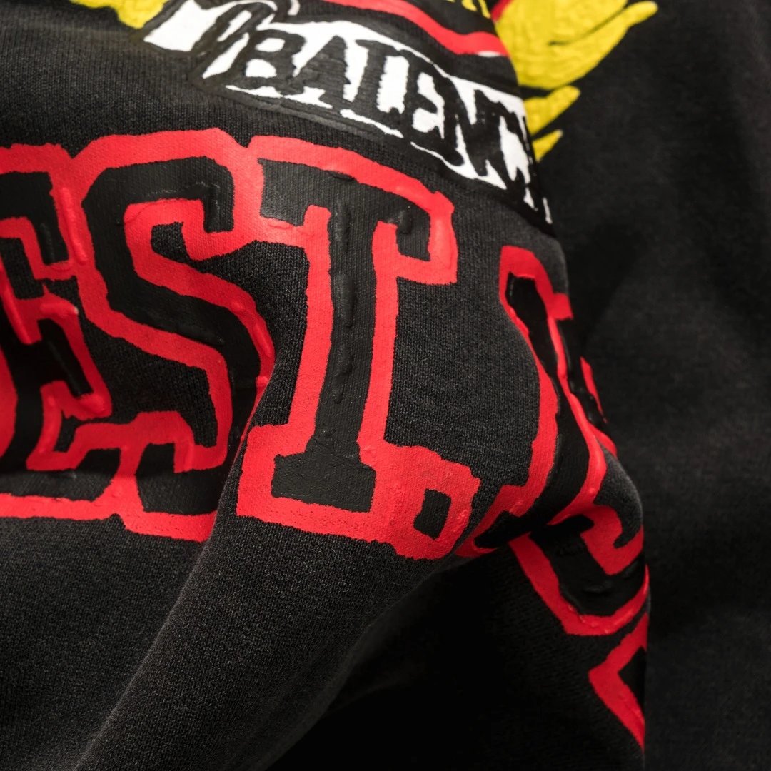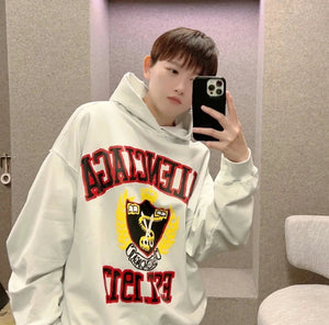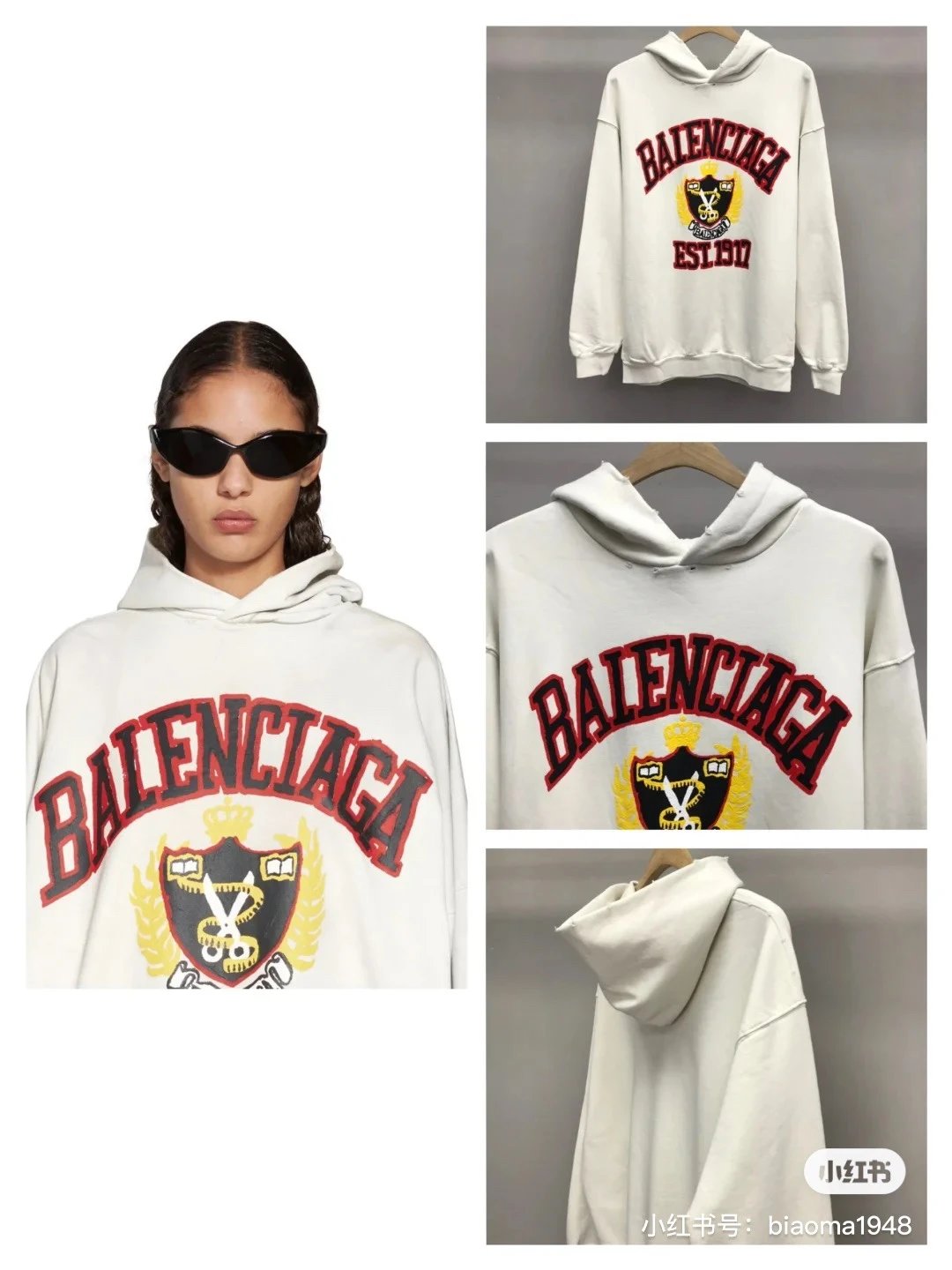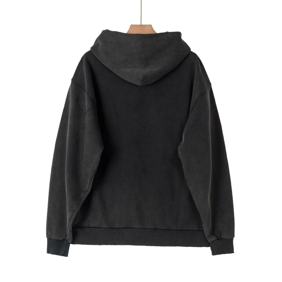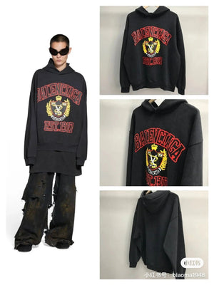 BALENCI*GA/Paris.23 Spring New Collection, Crown Wheat Scissors Foam Print Craft. Ready-to-Wear Vintage Washed Long Sleeve Hoodie. Synchronized with Brick Cabinet. Fabric Made of Paris ZP Custom Woven and Dyed Cotton Sweatshirt. Weight 450g, Clean Fabric Surface. Clear Texture, Soft and Comfortable.The thread is dyed without color difference.Classic patterns are printed using eco-friendly imported materials, with a hand-drawn effect and foam printing that creates a three-dimensional effect, replicating brick cabinetsGreat market currency exchange, welcome to compare.The style adopts an OS loose shoulder designUnisex