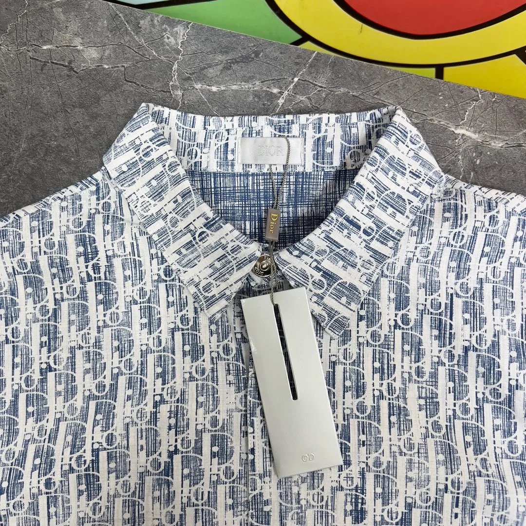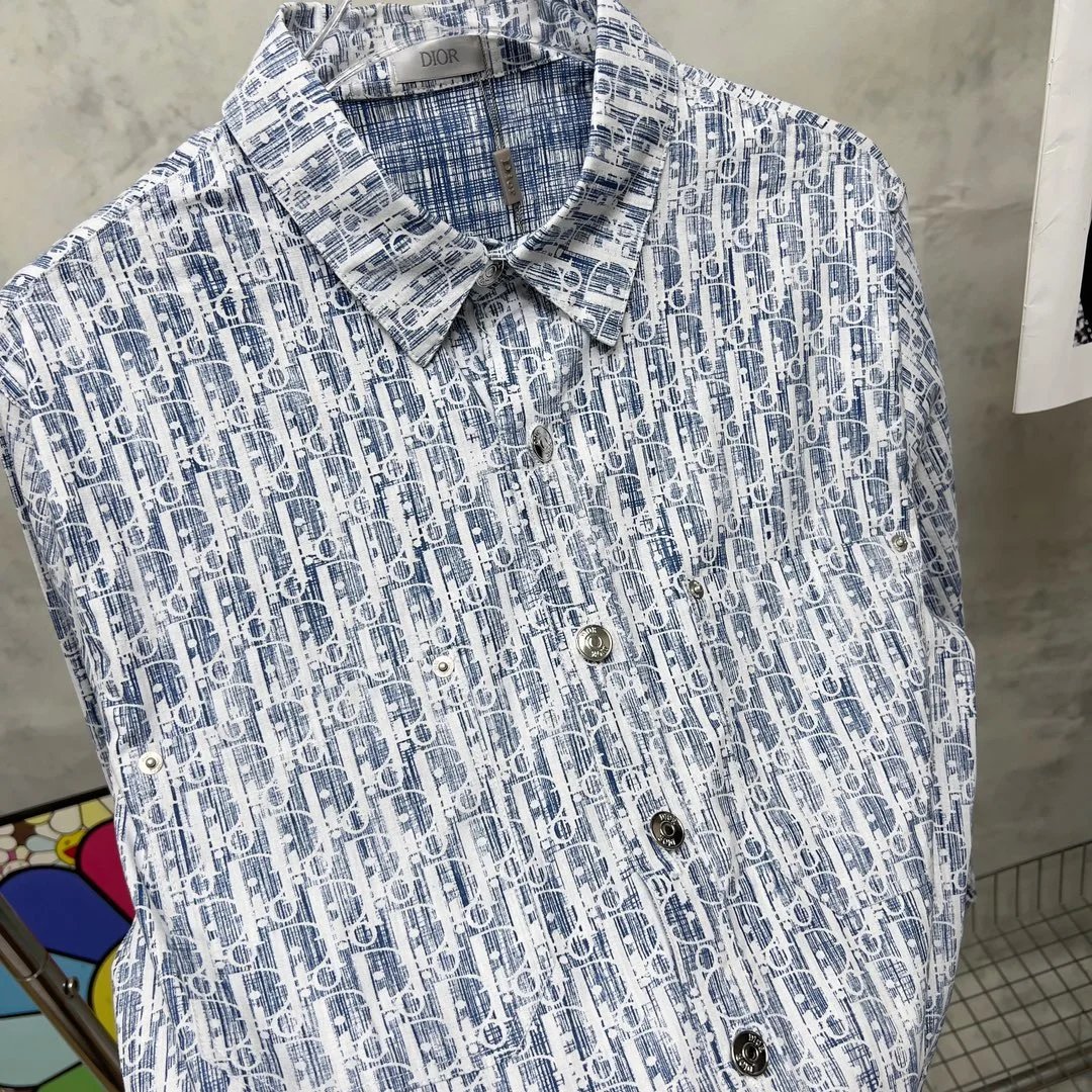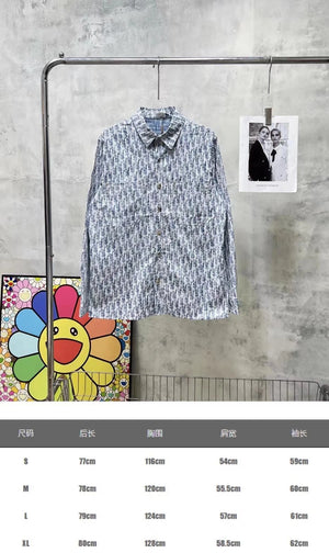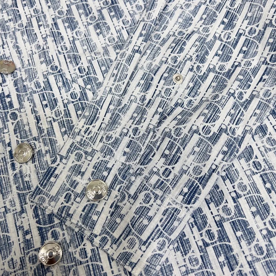 Dior Shirt Dark Pattern Full Print Button Shirt Casual Loose Versatile Turn-down Collar Long Sleeve Shirt os Cardigan Jacket Unisex Same Style24ss Autumn and Winter New Products