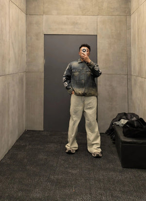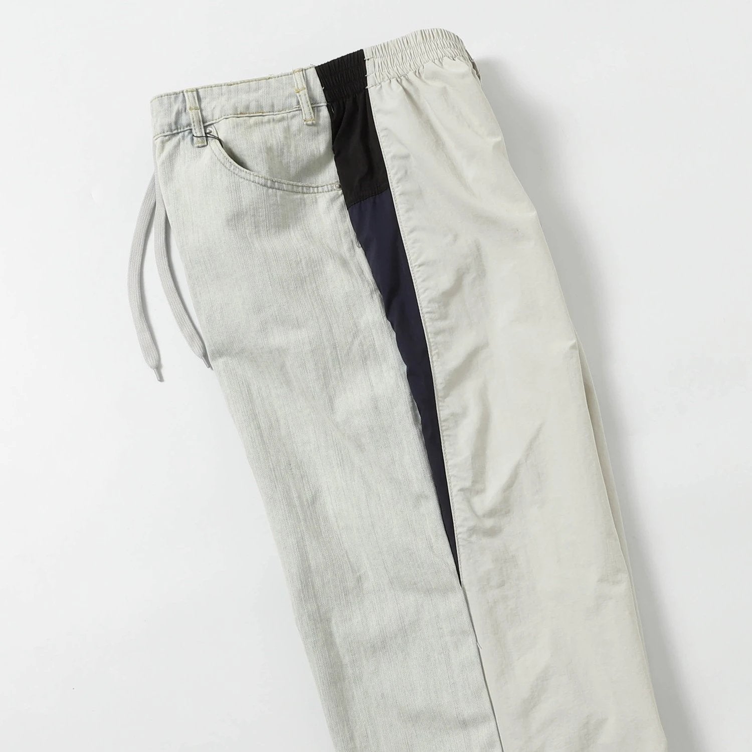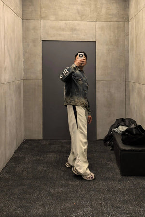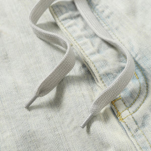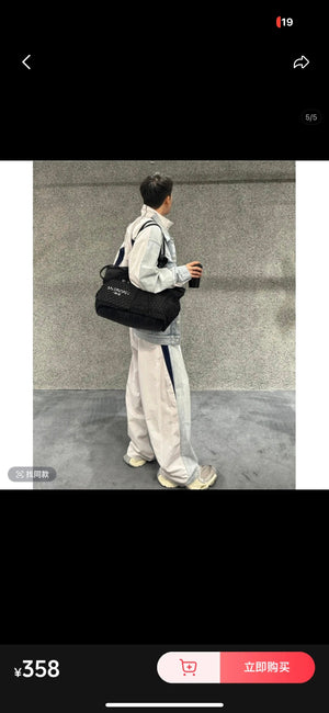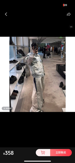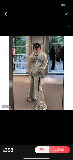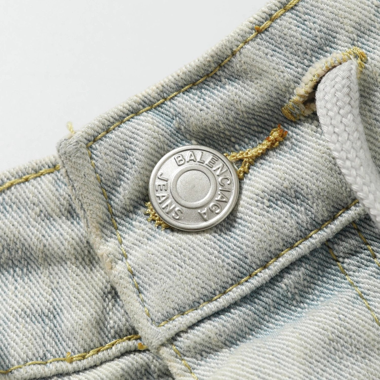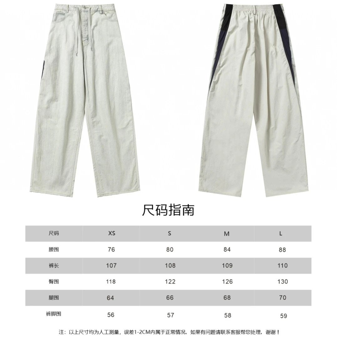 25SS Spring/Summer New Balenciaga Washed Drawstring Denim Fabric Patchwork Sports Woven Fabric. Washed Retro Style. Soft Touch. Loose Fit Version. Versatile Set. Denim Patchwork Woven Fabric. Unisex