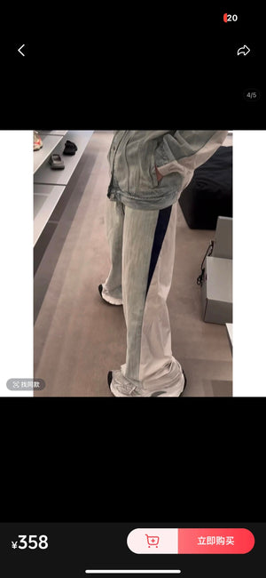 Balenciaga Jeans Denim Fabric Patchwork Sports Woven25ss Spring Summer New Straight Leg Pants Unisex