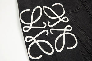 Top Version Lo*we Anagram Denim Jacket Fashion Simple Heavy Casual Short Jeans Unisex Washed Vintage Turn-down Collar Jacket