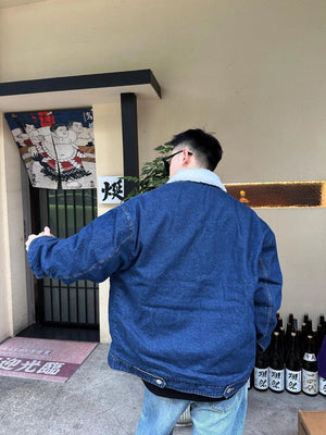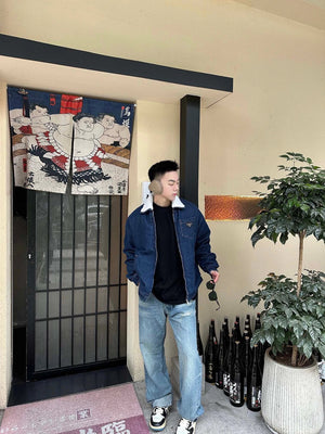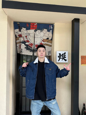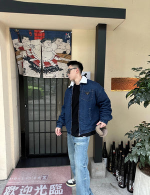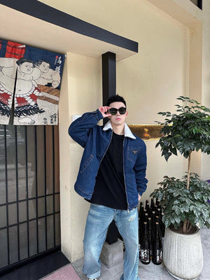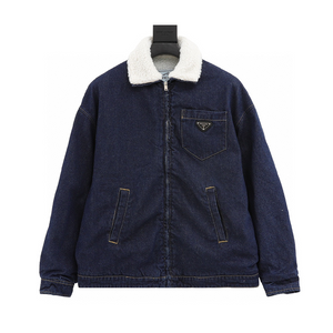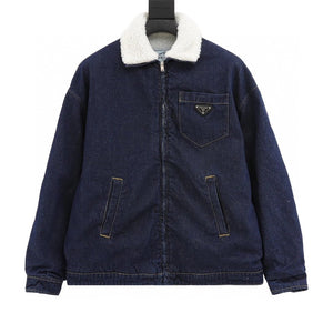 PRADA Jackets Denim Lamb Wool Lapel Jacket Same Style for Men and Women