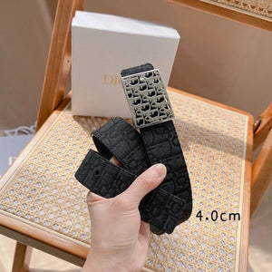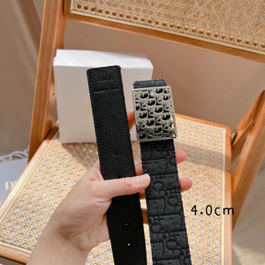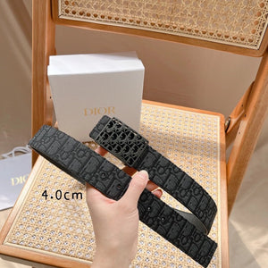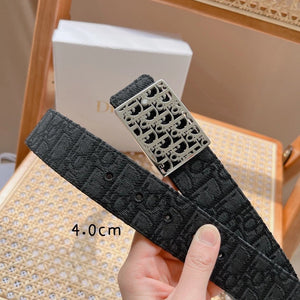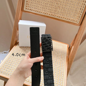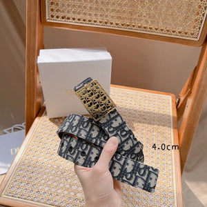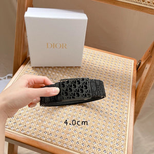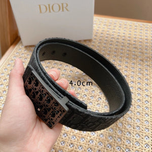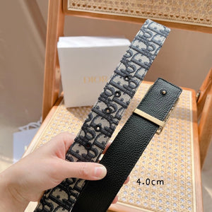 Dior Belt Top version Original Single Original Single Men and Women Universal Belt Width4.0cm Genuine Goods Quality Counter Full Set Packaging Original Leather Material Classic Presbyopic Full Printed Canvas Full Vertical Surface Calfskin Lychee Pattern B