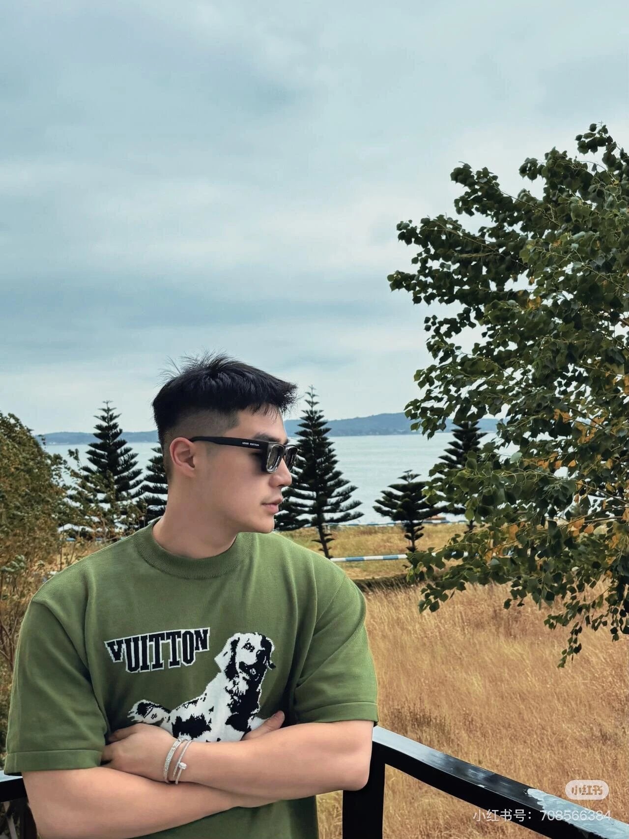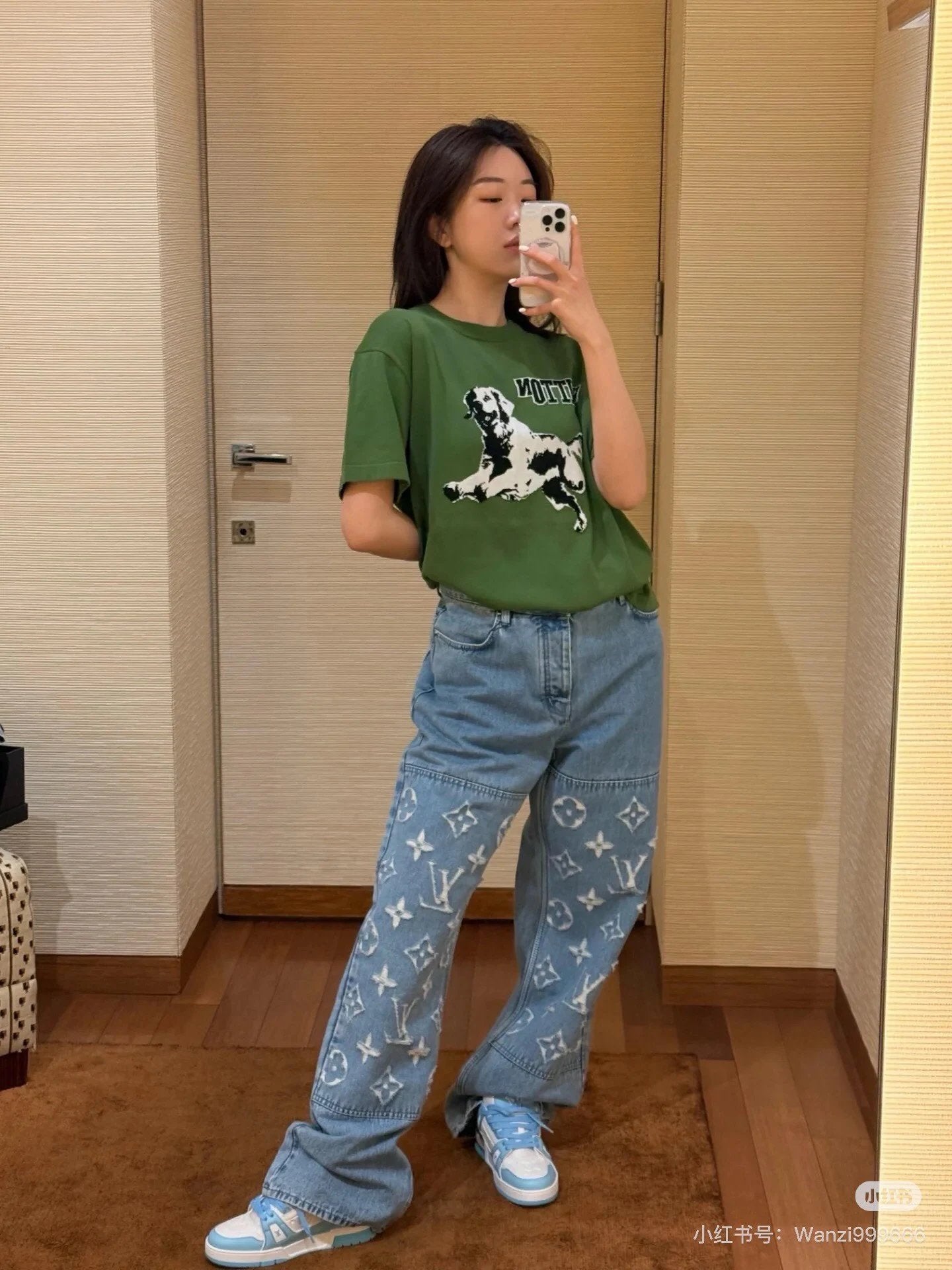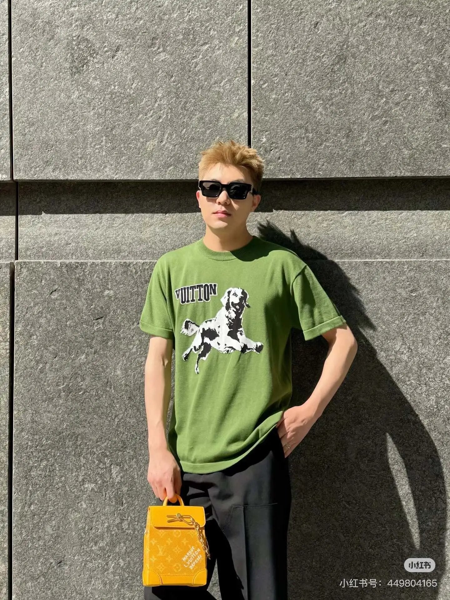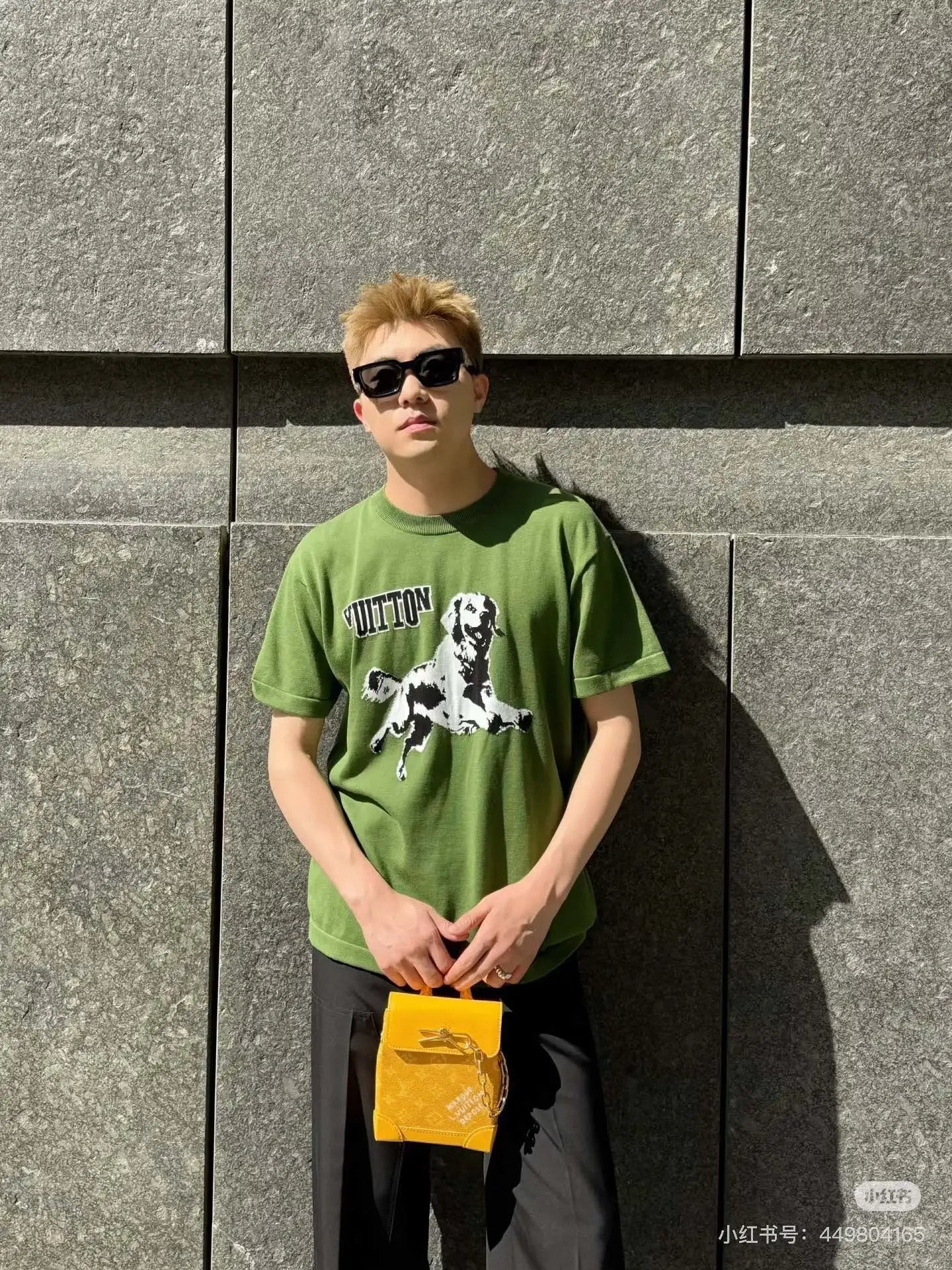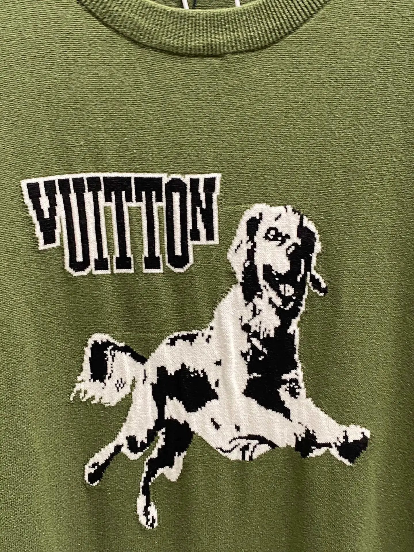 Louis Vuitton LV T-shirt Dog Series Hound Dog Knit Sweater Crew Neck Short Sleeve25ss New Product T Unisex T-Shirt OS Drop Shoulder Loose Fit Base Shirt Top T-Shirt Short Sleeve